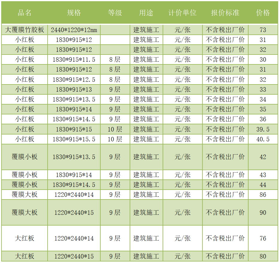 本周模板报价如下: