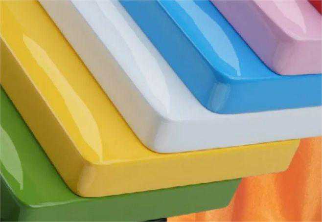 优点:饰面颜色鲜艳有光泽,选择多样,防水防潮防火性能好,易清洁打理,多做厨房的橱柜柜门,对增大厨房空间有一定补光作用等。