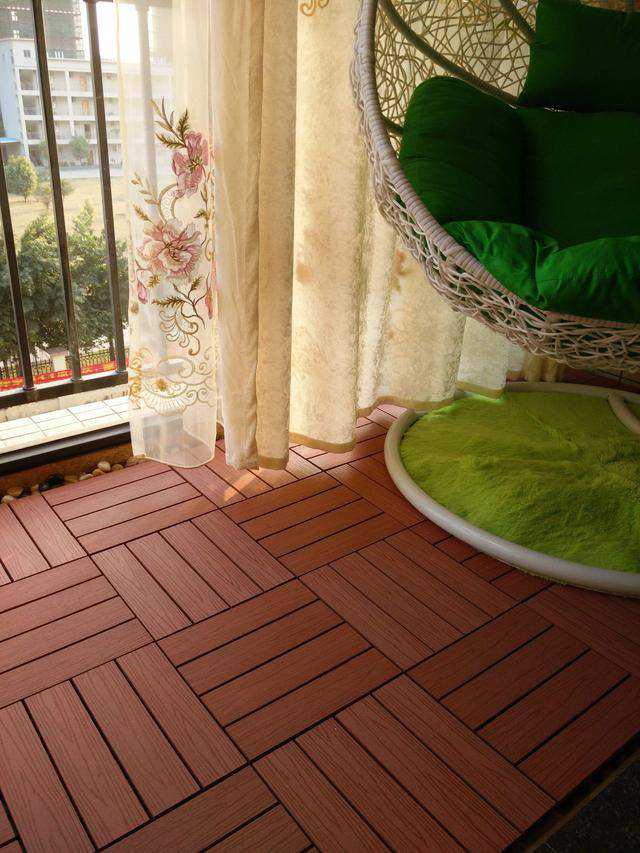阳台装修大家最习惯用的就是瓷砖了,下雨天要是有雨打进来,也不怕地板湿,但是阳台贴瓷砖的话,给人感觉太单一了,现在很多人都喜欢用防腐木来替代,能防潮又美观,非常的实用。