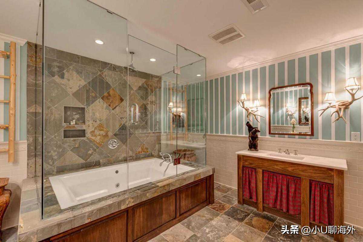 瑞文大道5号位于美国·田纳西州·查塔努加都会区,总占地0.65英亩(约4亩),套内净面积6161平方英尺(约572平方米),这栋别墅的主体结构由石头和木材打造,既环保又充满原始风格,夜晚时分,暖黄色的灯光亮起,这栋别墅俨然变成了一座童话世界里的木屋,温馨又浪漫。