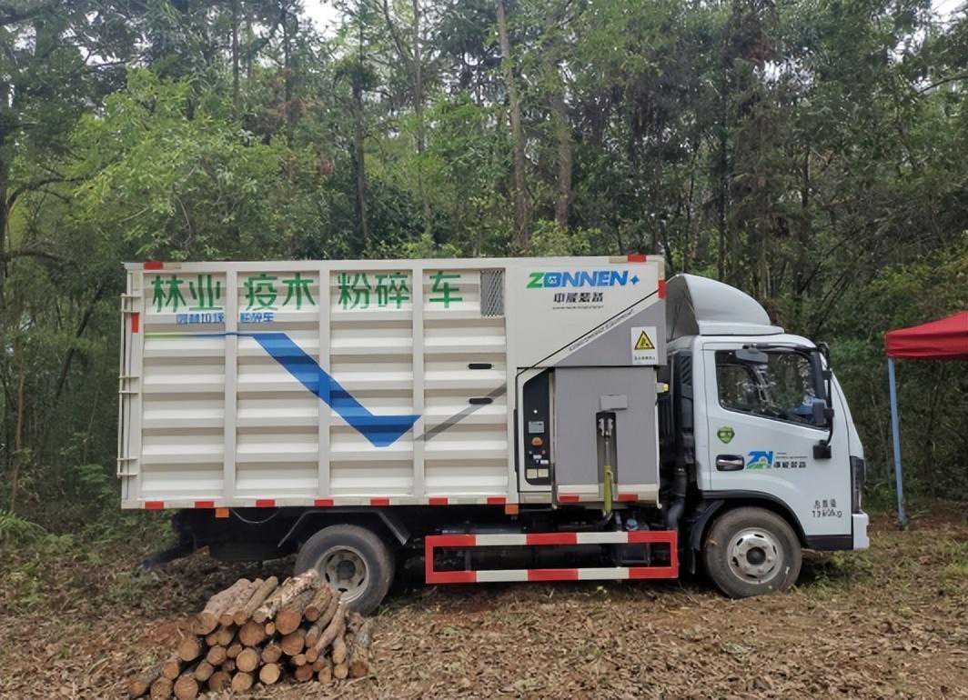这款设备的独特之处还在于,它是中能装备针对林业疫木处理难、监管难、运输难的现状,从防止疫木流失和二次传播入手,为林业疫木处置单位研制的一款集“移动、收集、粉碎、运输、监控”多功能于一体的疫木粉碎专用车。特别适用于大直径林业废弃物粉碎,以及台风灾后倒伏树木的现场清障作业。