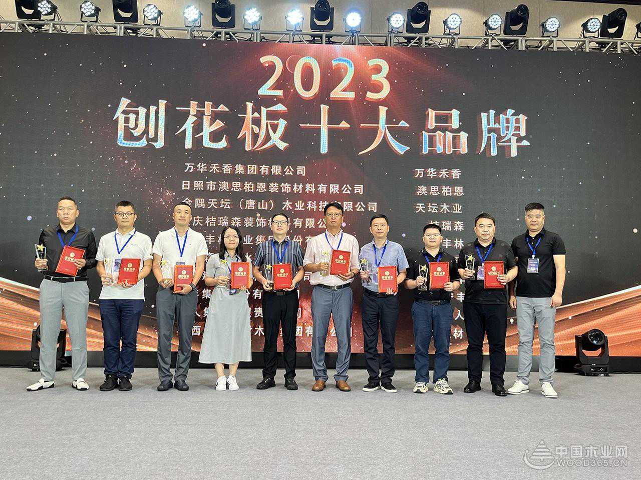 荣获“刨花板十大品牌”奖项的有:(万华禾香集团有限公司)万华禾香、(日照市澳思柏恩装饰材料有限公司)澳思柏恩、(金隅天坛(唐山)木业科技有限公司)天坛木业、(重庆桔瑞森装饰材料有限公司)桔瑞森、(广西丰林木业集团股份有限公司)丰林、(吉林森工露水河科技集团有限公司)露水河、(巴中建丰新材料有限公司)建丰、(宁丰集团股份有限公司)宁丰、(福人集团有限责任公司)福人、(广西广林新材木业集团有限公司)广林新材。