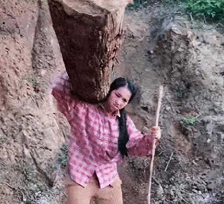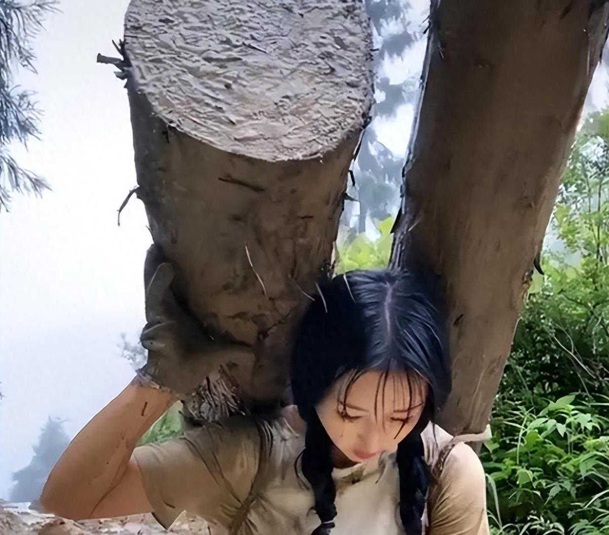 这起轩然大波的网红事件,核心围绕的正是"小花"所背的那两根沉重的原木。细心的网友发现,要一个瘦小的女孩独自背起这么重的木头几乎是无法想象的,因此质疑这是在造假。