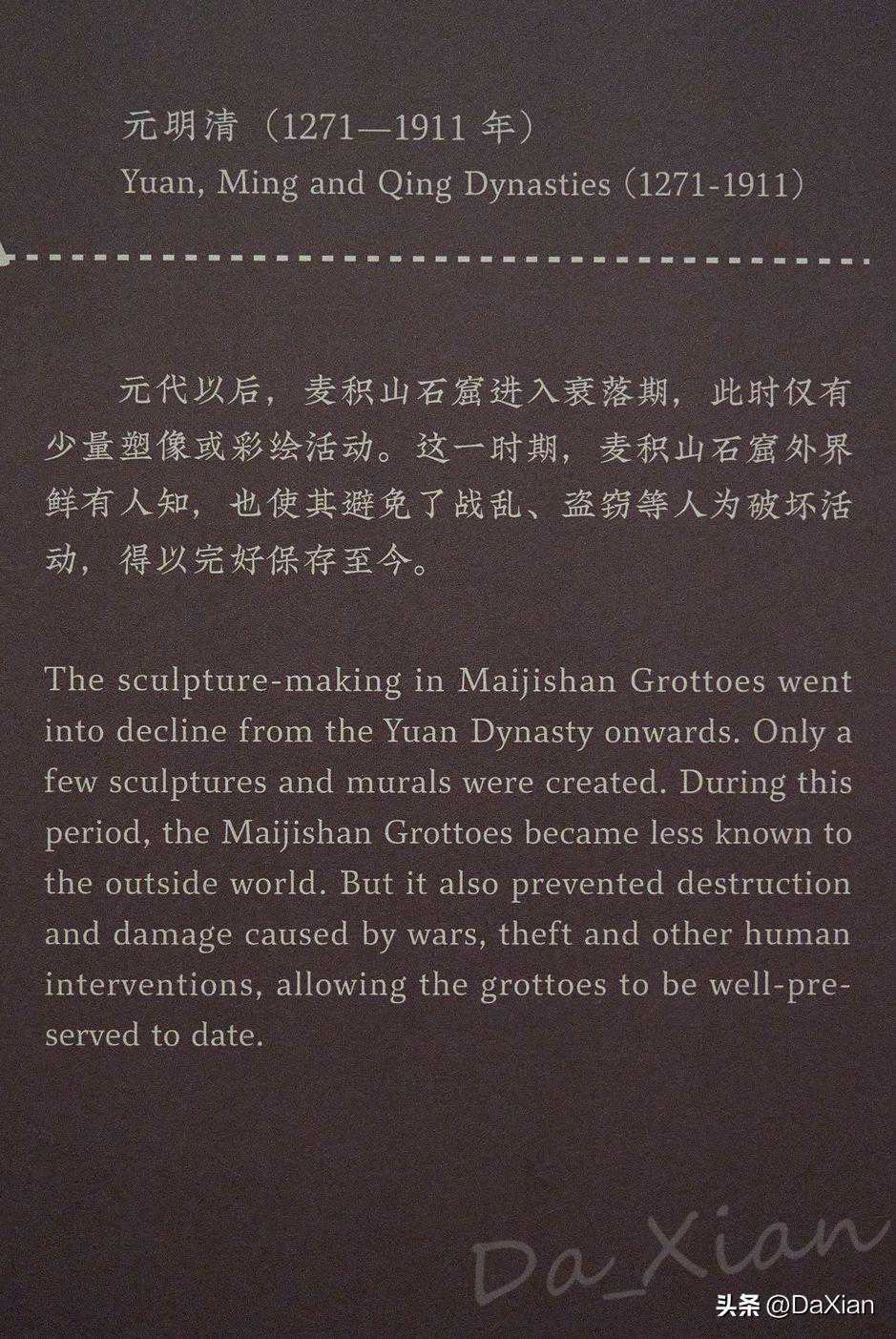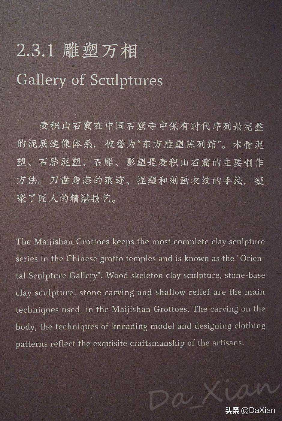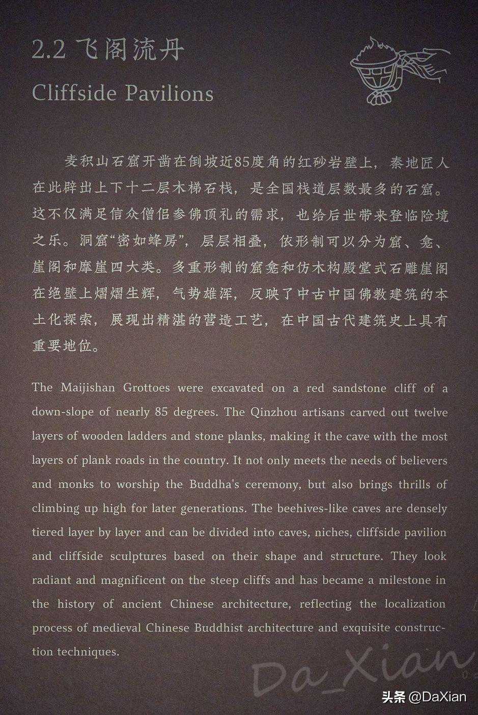 麦积山石窟作为5-13世纪佛教沿丝绸之路传播和发展的典型佛教石窟寺,是石窟遗存与地貌特征和自然景观完美结合的艺术杰作。其石窟遗存包含了佛教洞窟、瑞应寺、山顶舍利塔以及馆藏可移动文物等,是典型的文化遗产综合体。麦积山石窟的洞窟遗存全部开凿于东西长约120米、高80米的悬崖峭壁上,洞窟之间飞桥栈道相连。洞窟遗存包含雕塑、壁画、碑刻、题记等类型。题材众多,内容丰富。