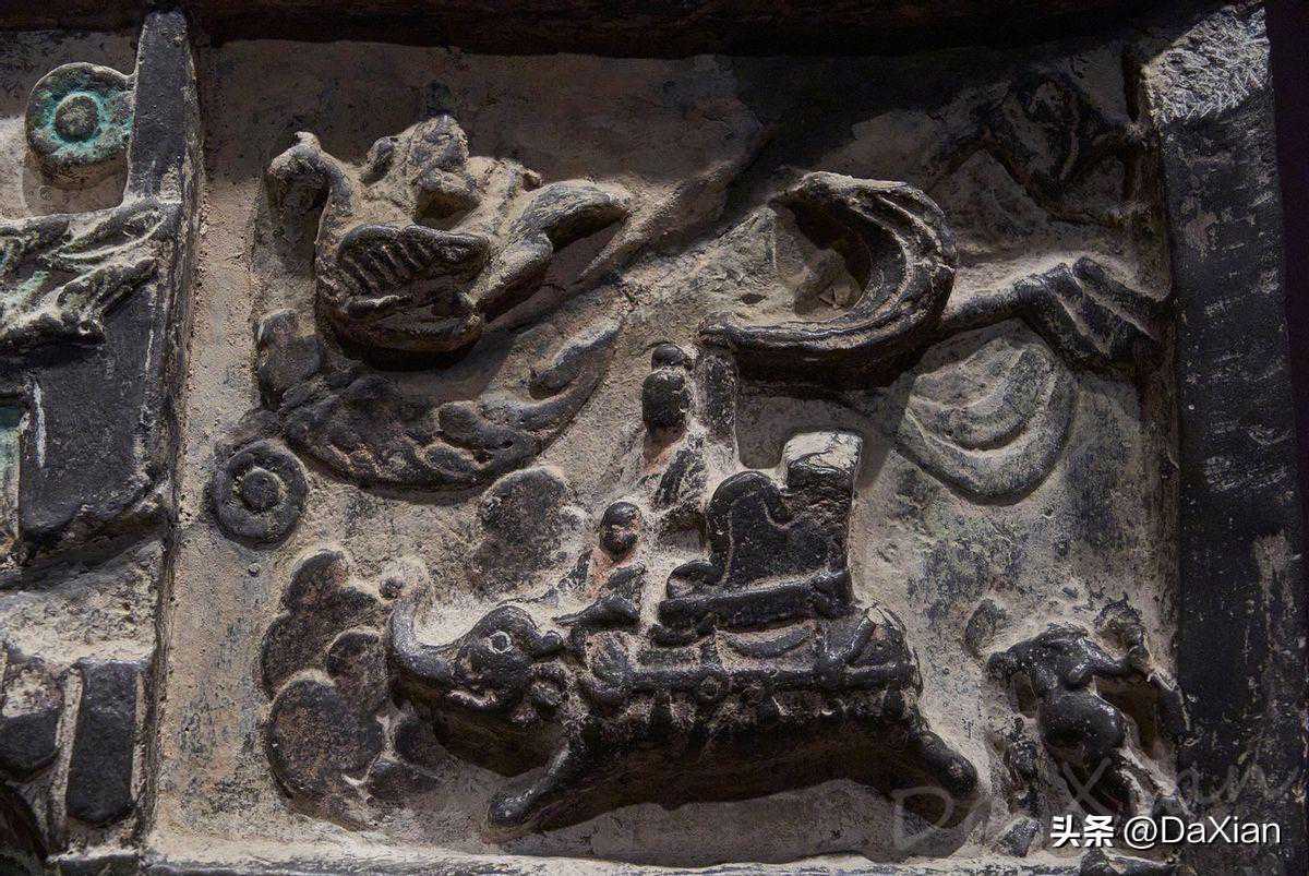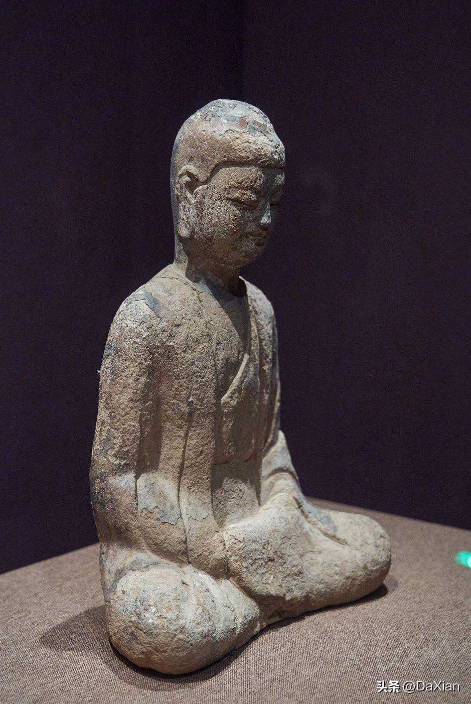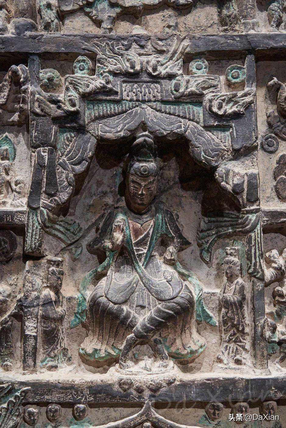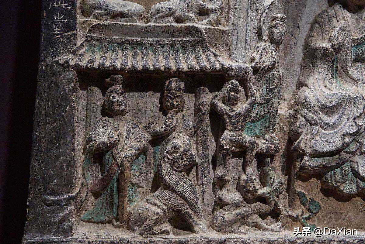 佛传故事碑碑头半圆形,中间断为两截,1985年拼粘在一起。正中的三个大格分别为释迦多宝并坐说法、交脚菩萨和释迦说法,两侧的小格分别是燃灯授记、乘象入胎、树下诞生、深山苦修、树下思惟、初转法轮、降魔成道、维摩辩法、阿育王施土、佛入涅樂等画面。形象生动地再显佛祖的一生。该碑雕刻工艺精湛,形象生动,堪称麦积山的“镇馆之宝”。