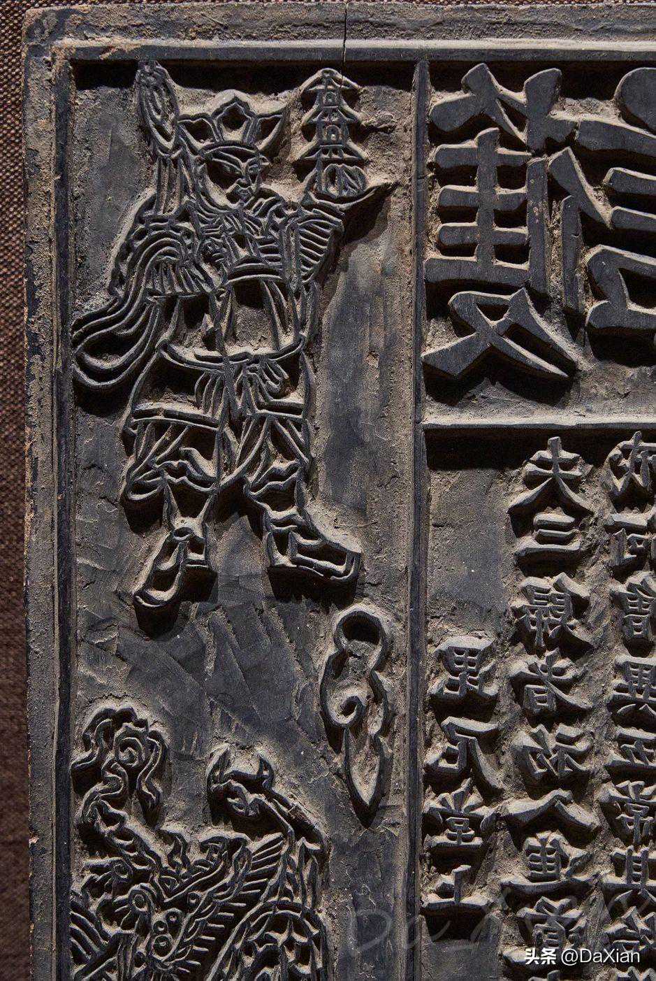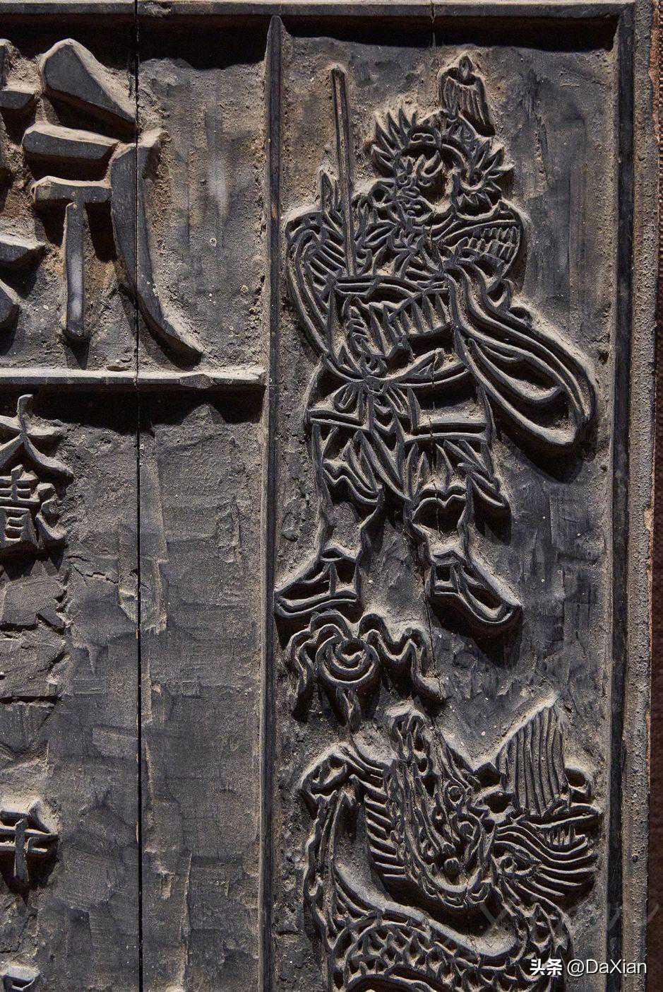 减地阳刻。四周雕有象征风调雨顺、保佑四方安居的四大天王,均身穿铠甲,手中紧握法器,威风凛凛。上部横向刻“护戒牒”三字,正文十二行。首行刻“毗尼堂上”四字。左右两边刻浮雕騰空云龙,下方有浮雕二龙戏珠。为麦积山瑞应寺于清代为受戒弟子发放的受戒证件。