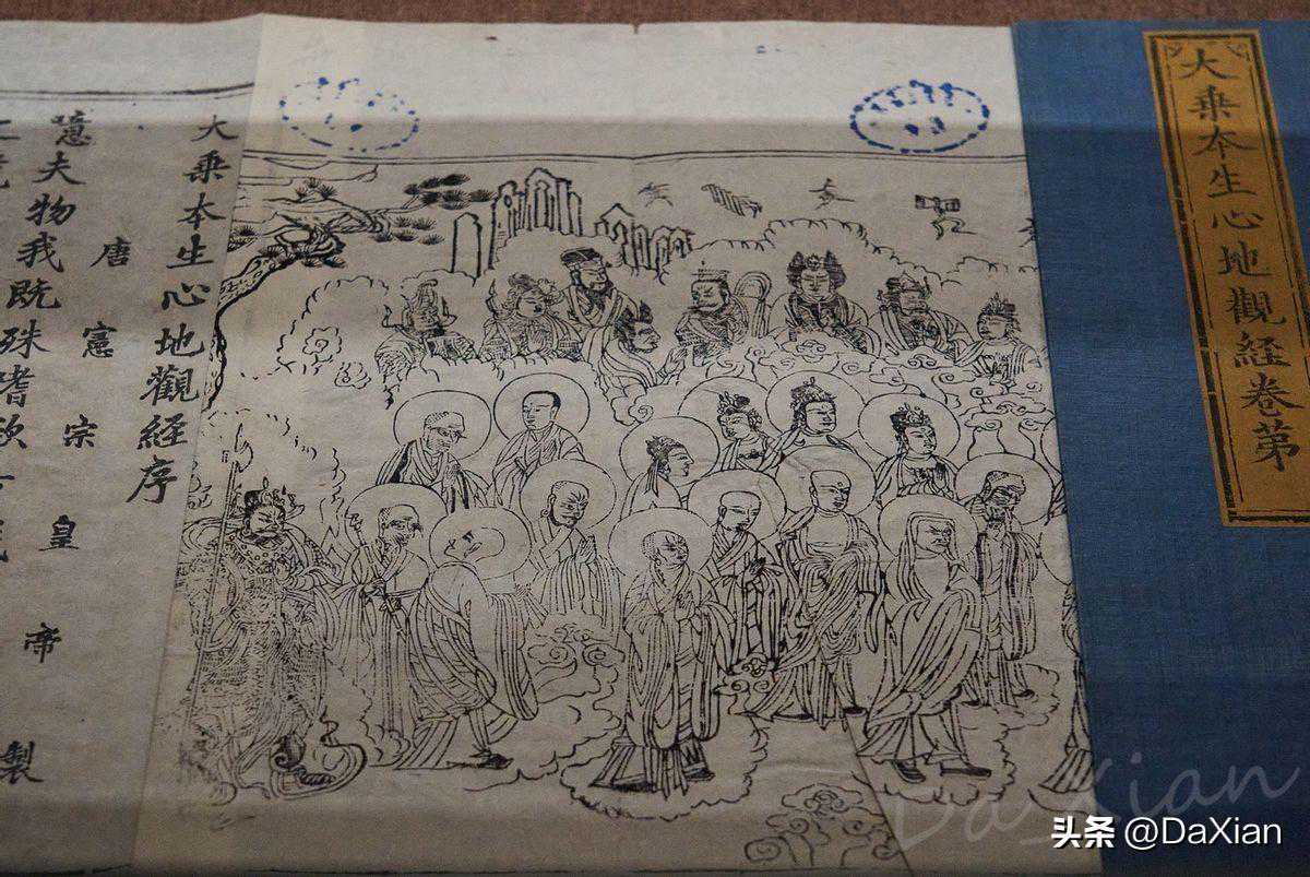 《大乘本生心地观经》共八卷,明万历丙申年(1596年)刻本,经折装。卷首有版画,雕刻精美,人物形象生动。此经系唐般若译本,系统论述了佛教“四恩”思想,即父母恩、众生恩、国王恩、三宝恩,是大乘佛教重要经典。