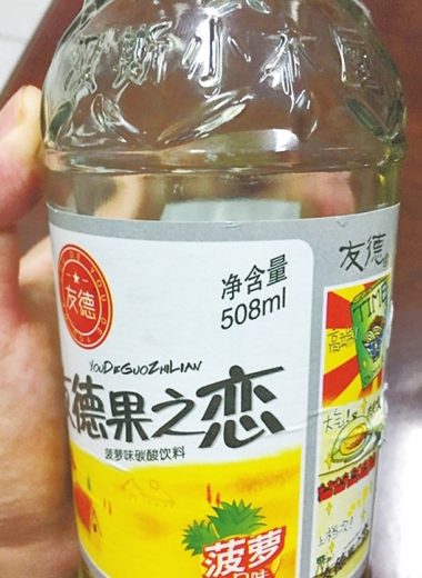 在另一家商铺,记者注意到该商户除了汉斯小木屋外,还经营有“汉斯卡菠萝”,用的同样是汉斯小木屋的瓶子。商铺老板说:“汉斯卡菠萝可以保证货源,味道比汉斯小木屋要甜一些。”