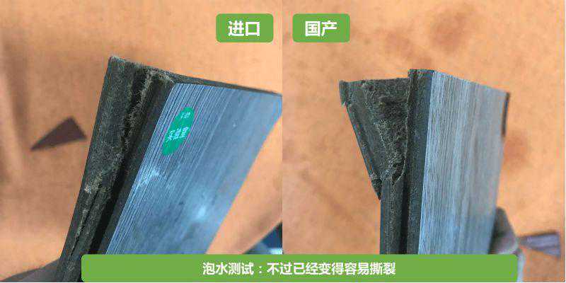答:表现相当,浸泡20小时候的地板,表现上都没明显异常,但材料都明显变软,很容易将木板撕裂。