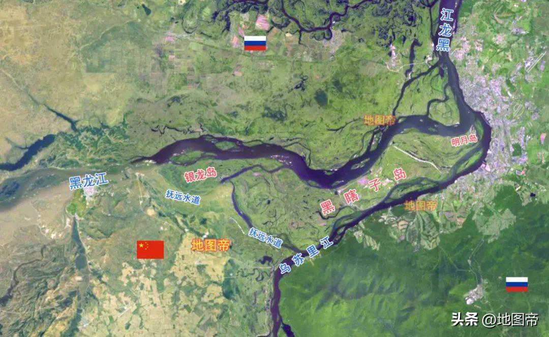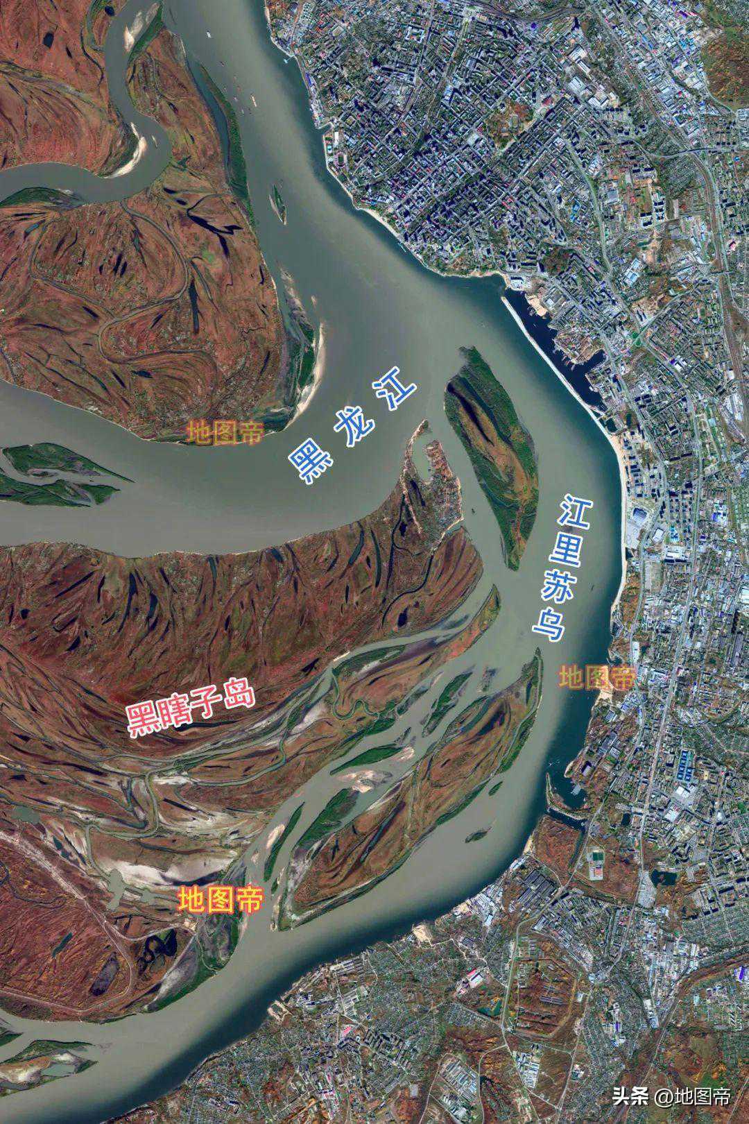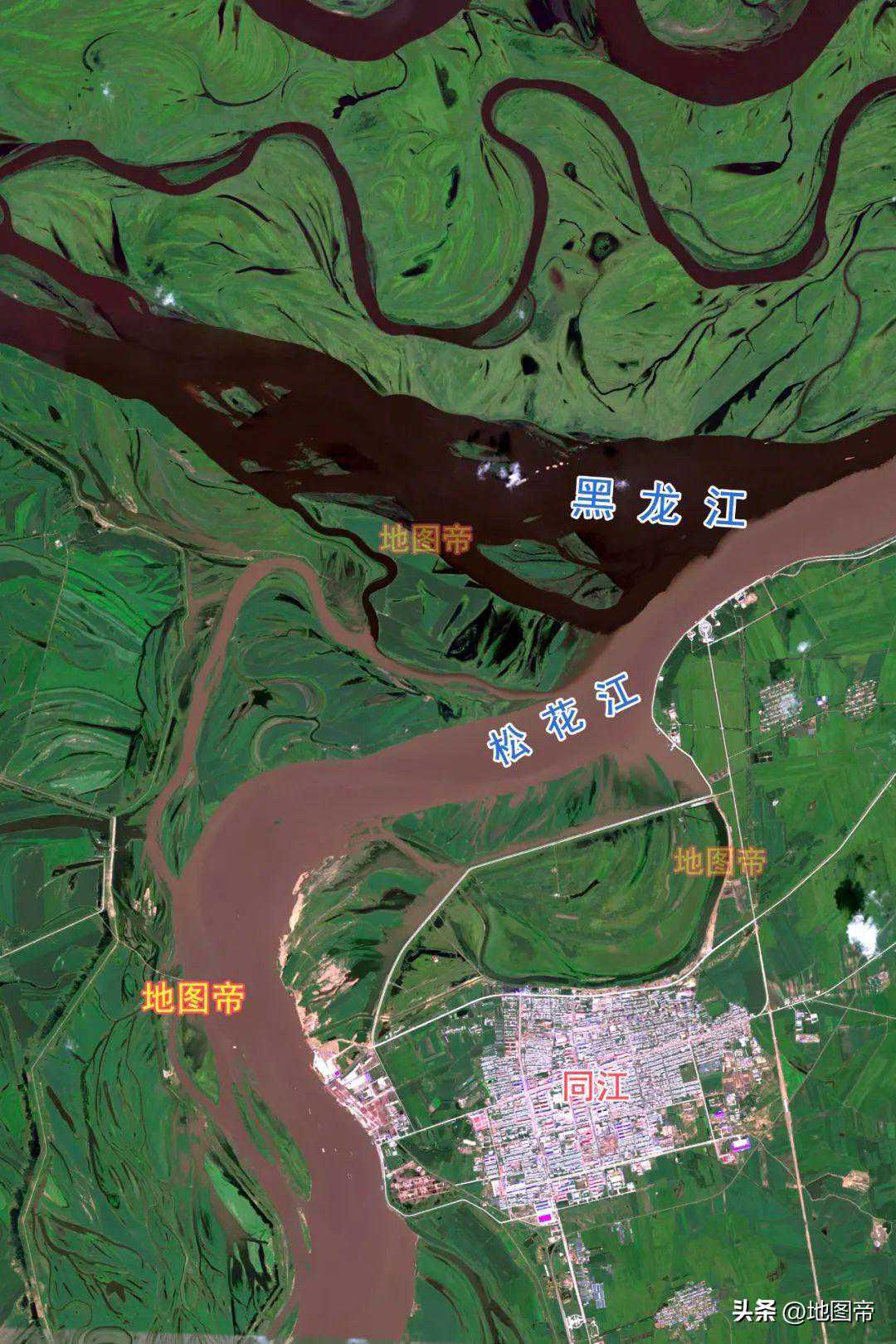 黑龙江自西向东奔流,江水呈墨绿色,松花江由西南至东北,江水裹挟泥沙较多,呈黄色。黑龙江与松花江在佳木斯的同江交汇,江面开阔,北黑南黄、泾渭分明,蔚为奇观。黑龙江从这里开始称为“混同江”,向东绵延数十里,才相拥相融,黑黄分界线才逐渐模糊。