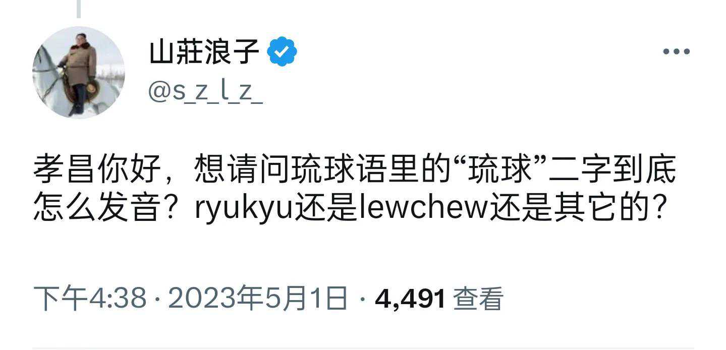 网友“山莊浪子”问:孝昌你好,想请问琉球语里的“琉球”二字到底怎么发音?ryukyu还是lewchew还是其它的?