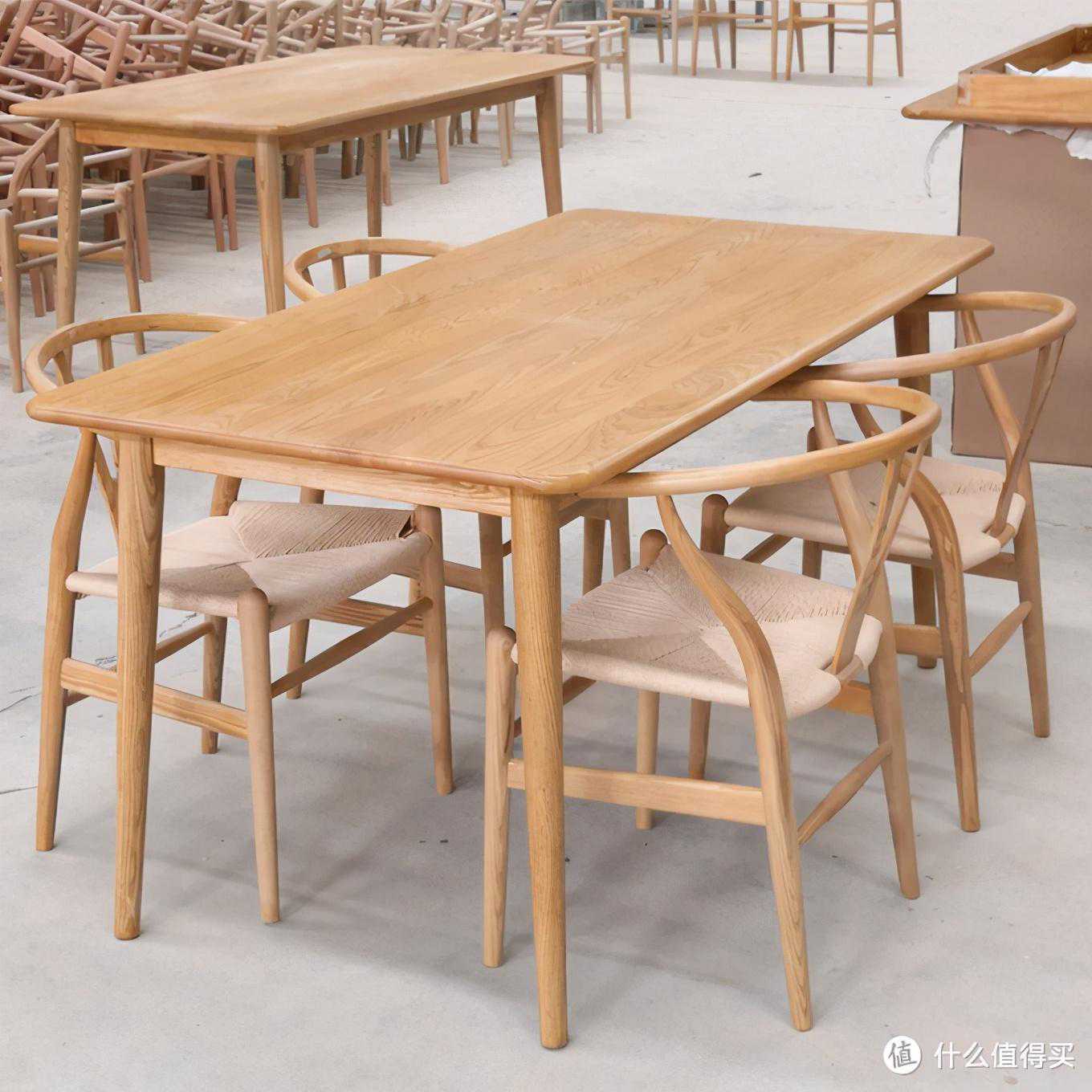 同时它家除了Y椅之外还卖餐桌,价格不贵,虽然桌腿为常见三角木结构,但是桌面拼板是有内穿带的,这一点在低价桌类家具中就显得性价比很高了。