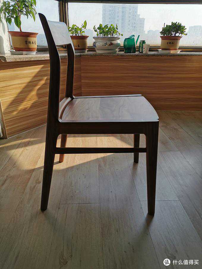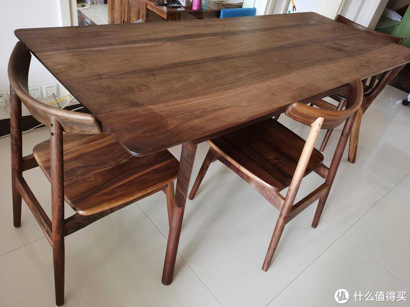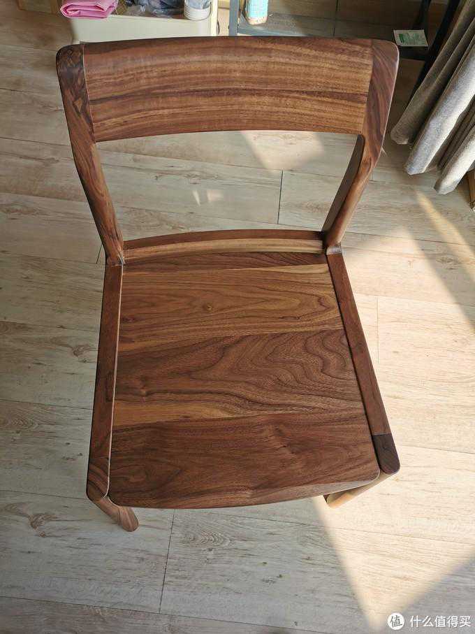 (2)览春木业:海岸椅孩子出生后,月嫂就入驻家里了,同时父母也过来一起帮着带孩子。每到吃饭的时候,5个人吃饭只有4张餐椅,我只能灰溜溜跑去茶几吃,烦得很。正好自己还没用过黑胡桃木,于是趁着吃喜面收份子钱的机会,找领导申请预算,从览春店里入了一把最便宜的全榫卯海岸餐椅试试水。