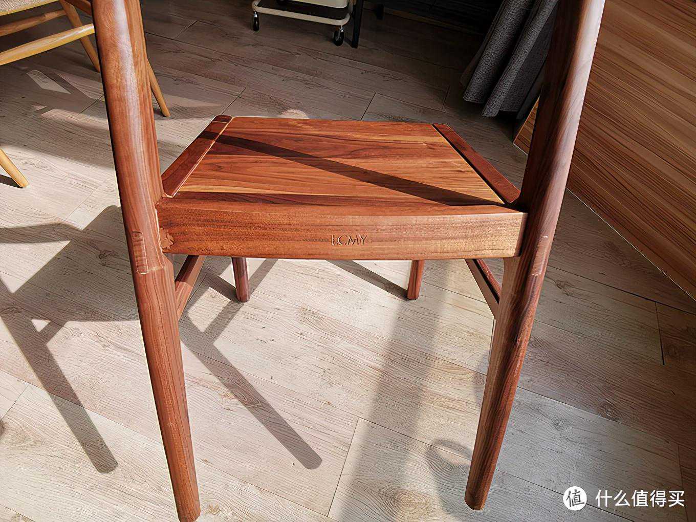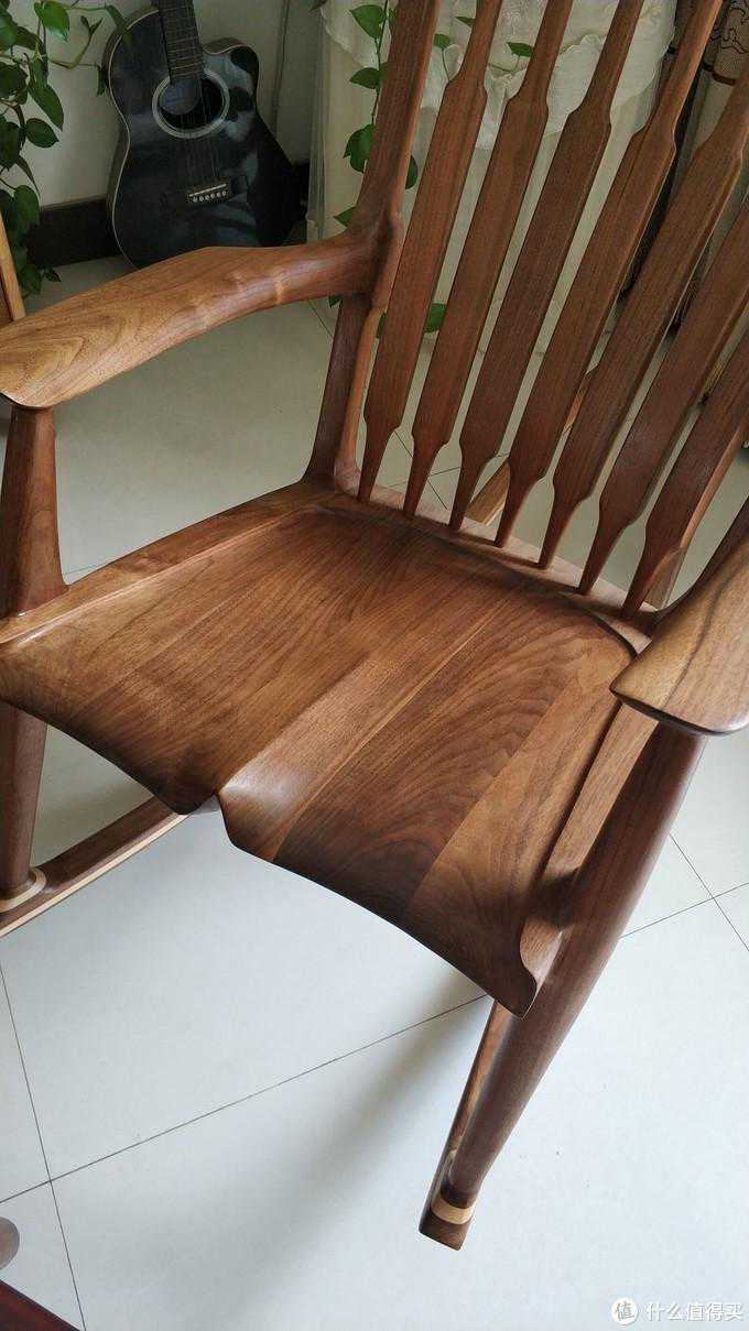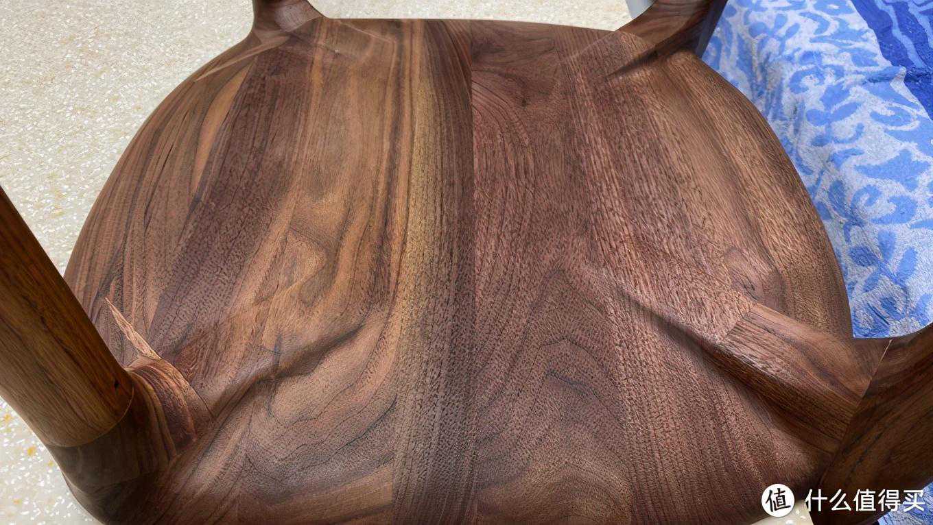总体使用感受:很喜欢。这把椅子是全榫卯结构,除了椅子座面为拼接板面,其他诸如腿部、靠背、横撑等都是一木而出,选料还是可以的。整体结构很稳固,座椅面略微向后倾斜,而且靠背的角度好评,正好匹配人坐下来时的脊背角度。木蜡油涂装非常光滑细腻,手感很棒。