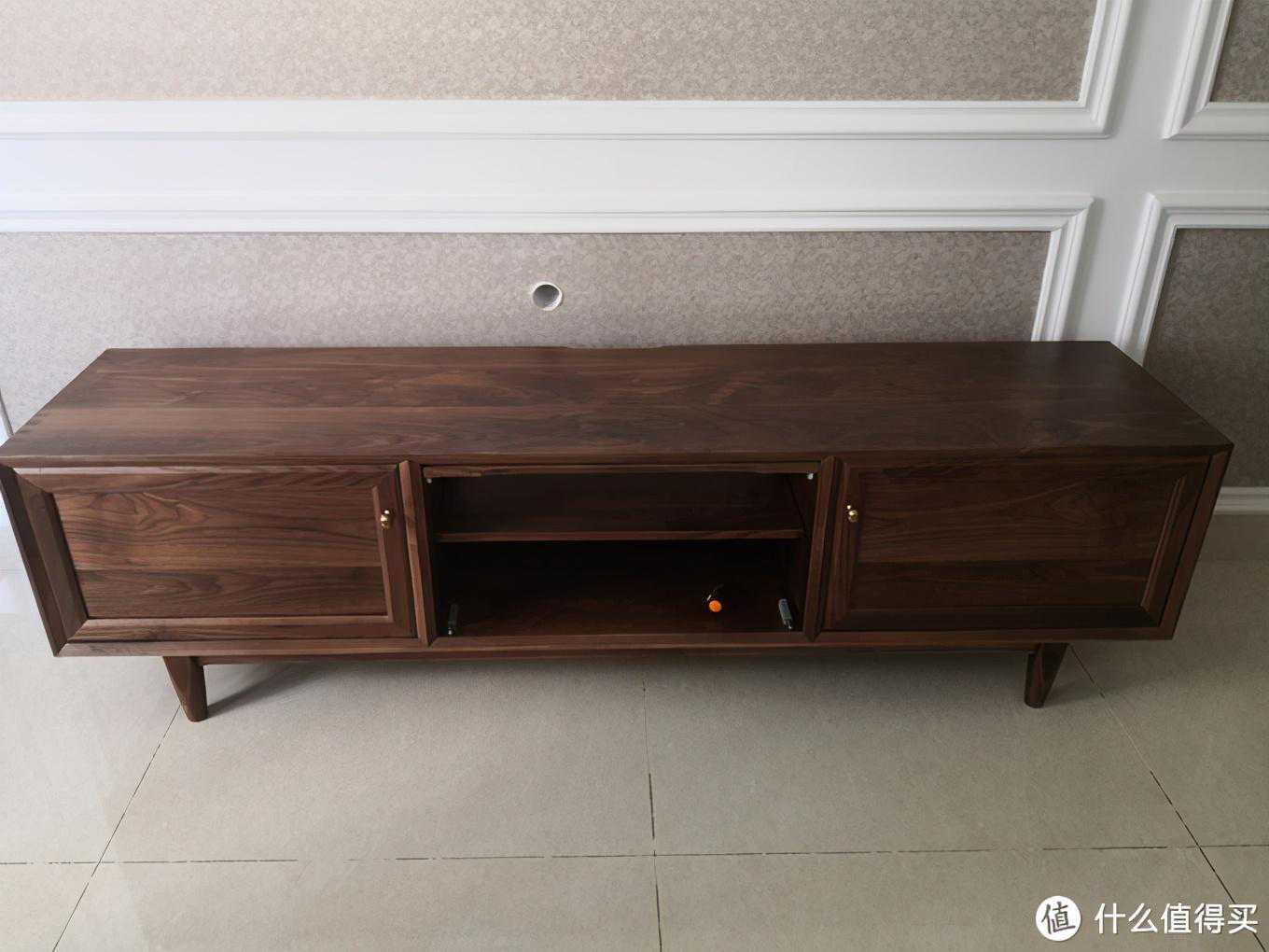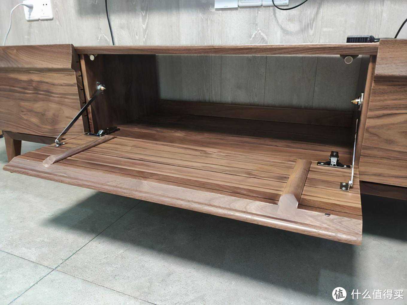 全长1.8米,全榫卯整装结构,有白蜡木和黑胡桃两种材质可供选择。两侧柜门为对剖工艺,木纹基本对称,好评。