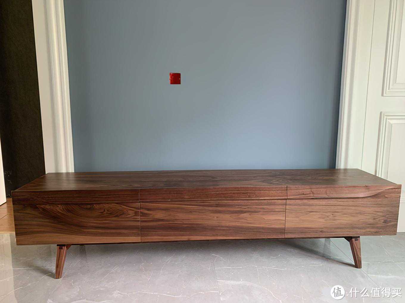 有点遗憾的是,上边这个颜值很高的落霞电视柜只提供黑胡桃木的材质,并且只有2.1m和2.2m两个尺寸。小户型的房子可以看下同店的开怀电视柜: