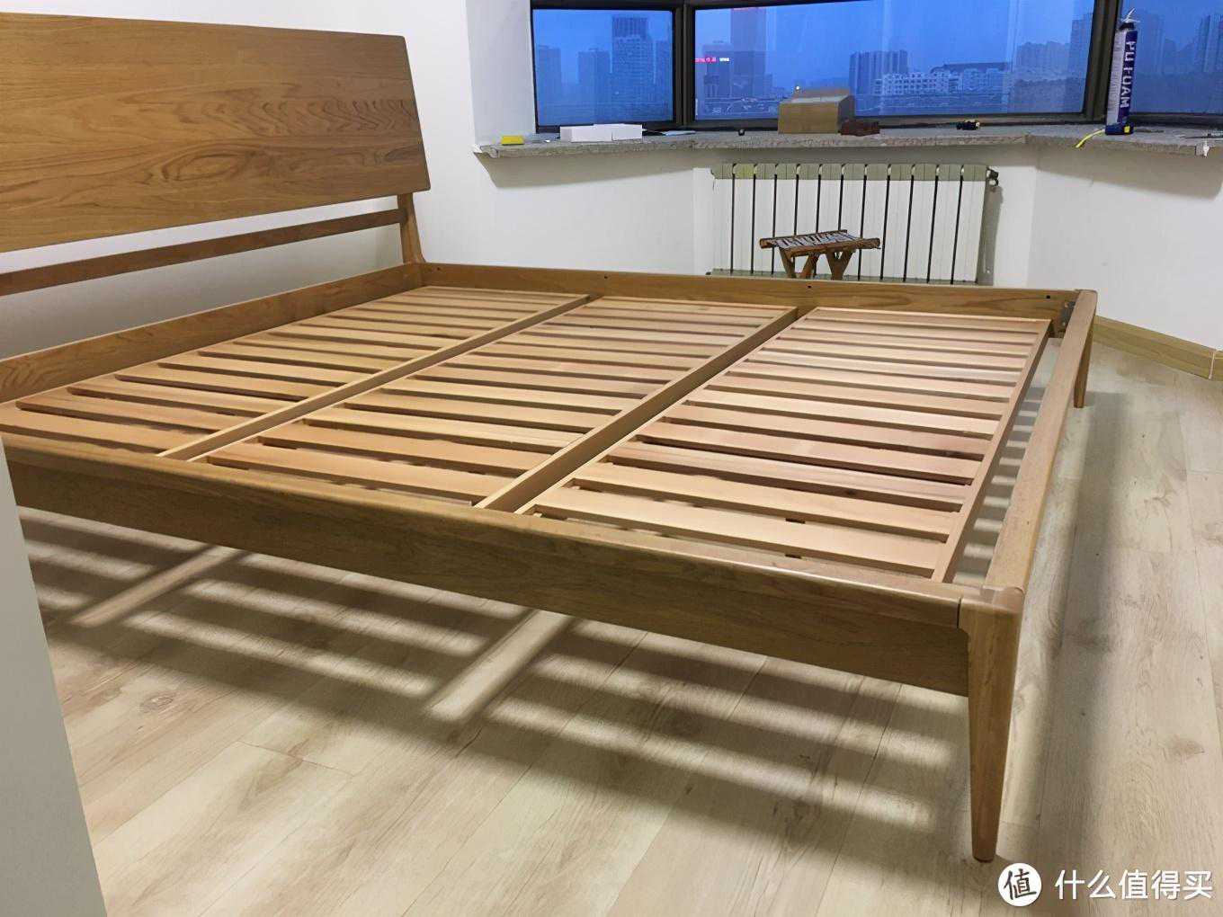 这是典型的丐帮三大家的低价入门实木床,整体用料非常单薄,连接结构为低档五金方式,拼版选料也不甚美观,不过用还是能用的,优点只有两个:主材木料确为橡木、价格便宜。