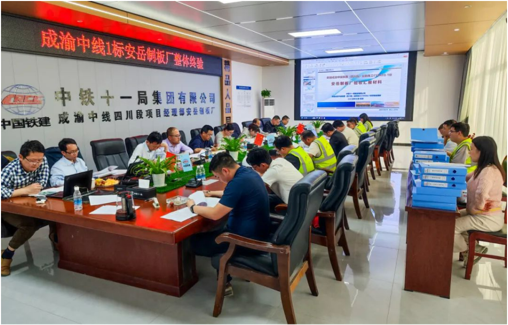 据悉,此次验收由长江沿岸铁路集团四川有限公司组织,主要对安岳制板厂规章制度、人员配备、机械设备配置、安全管控措施、拌合站性能及内业资料等情况进行了全面检查。经检查,验收组对安岳制板厂的标准化建设情况给予肯定,一致认为安岳制板厂规划布局合理、人员配备齐全、设备性能良好、制度体系完善,具备生产条件,符合验收标准,准予通过验收。
