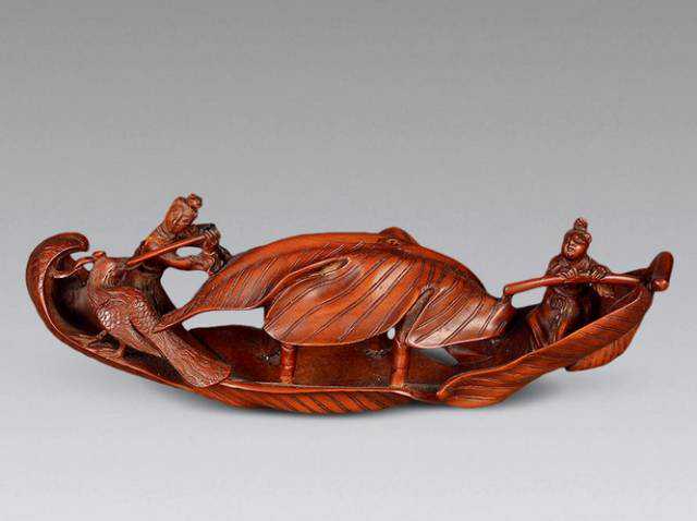 黄杨木雕人物船形