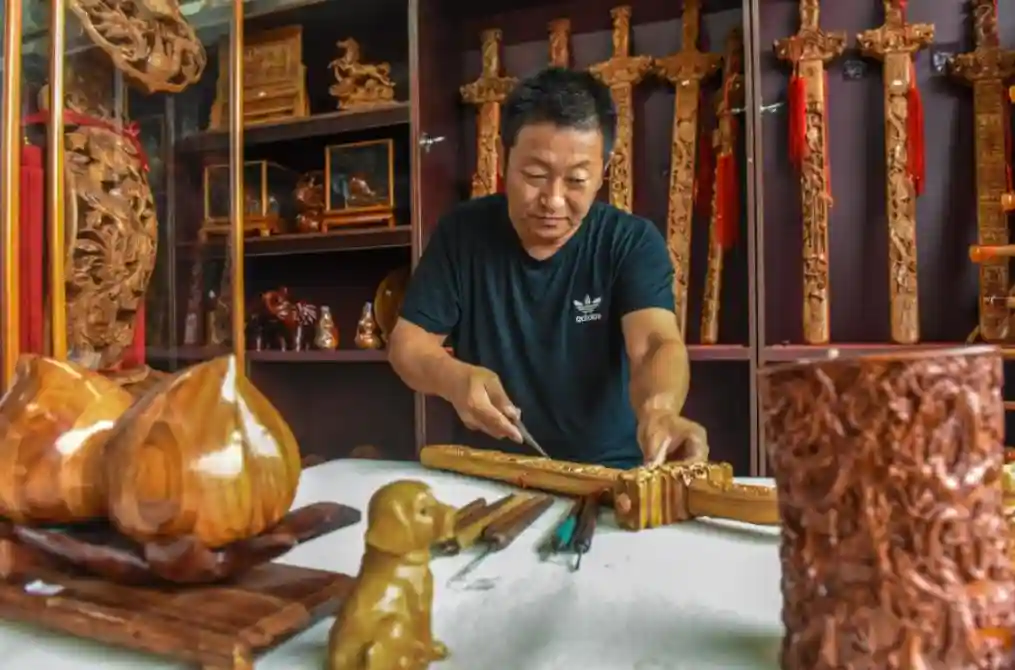 桃木独有的纹理和色泽让每件作品都散发着内敛的光泽。现代工艺师傅们在传统技艺的基础上加入新的创意,将桃木制品的应用范围不断扩大。