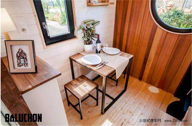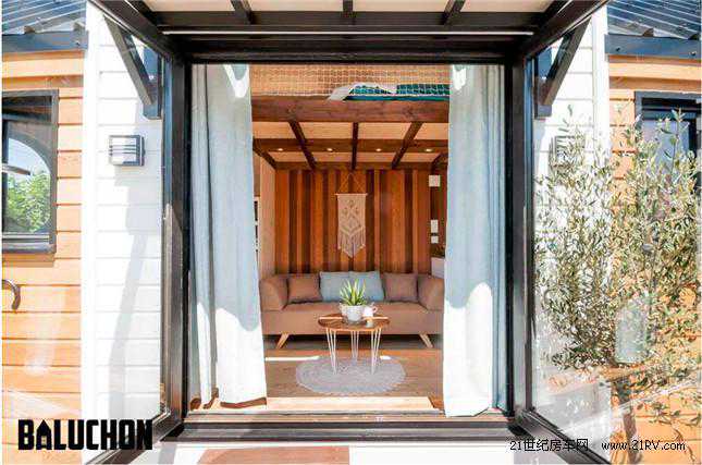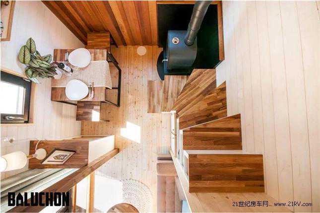 【21RV讯】移动木屋并不少见,然而设施齐全、设计巧妙的小型移动木屋却更受瞩目。法国Baluchon公司最近推出了一款名为Ostara的小型移动木屋,车长仅为6米,并且在布局设计方面表现尤为惊艳。