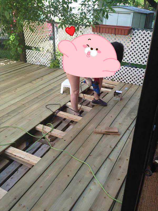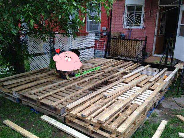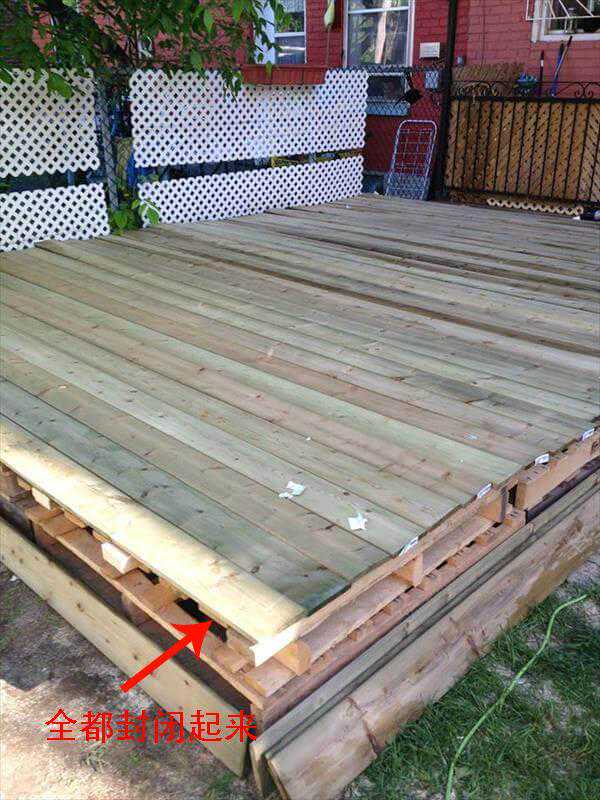 第一层的木栈板主要是提供了坚固的骨架,所以我们还需要再铺一层木栈板。