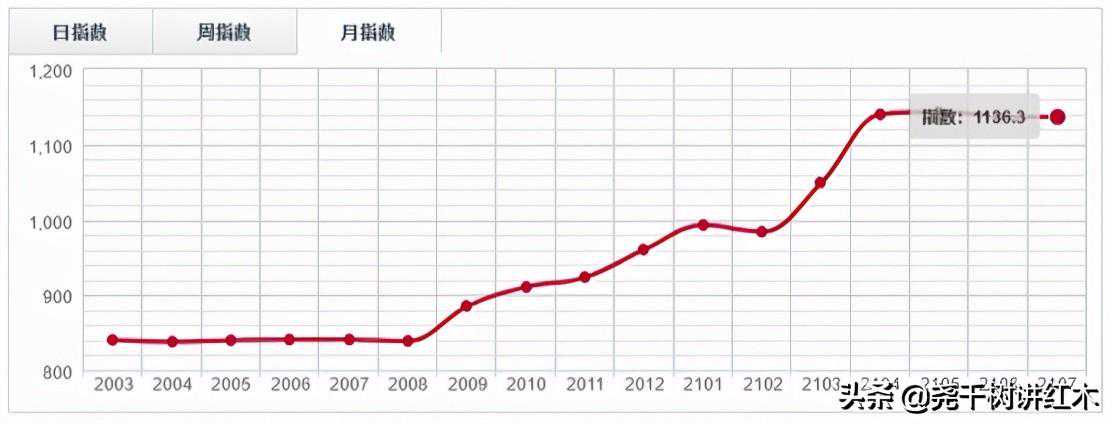 ▲中国•广东鱼珠(刺猬紫檀)价格指数走势图