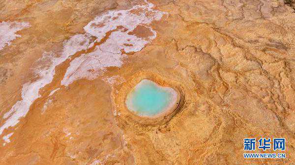艾肯泉,位于海西州茫崖市花土沟镇境内。从空中俯瞰,泉眼与喷涌出的泉水,及周围土地上深红色环带状的沉淀物,组成了一个奇特的瞳孔造型,仿佛一只镶嵌在大地上的眼睛。宋忠勇