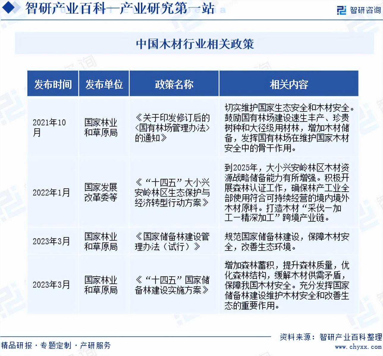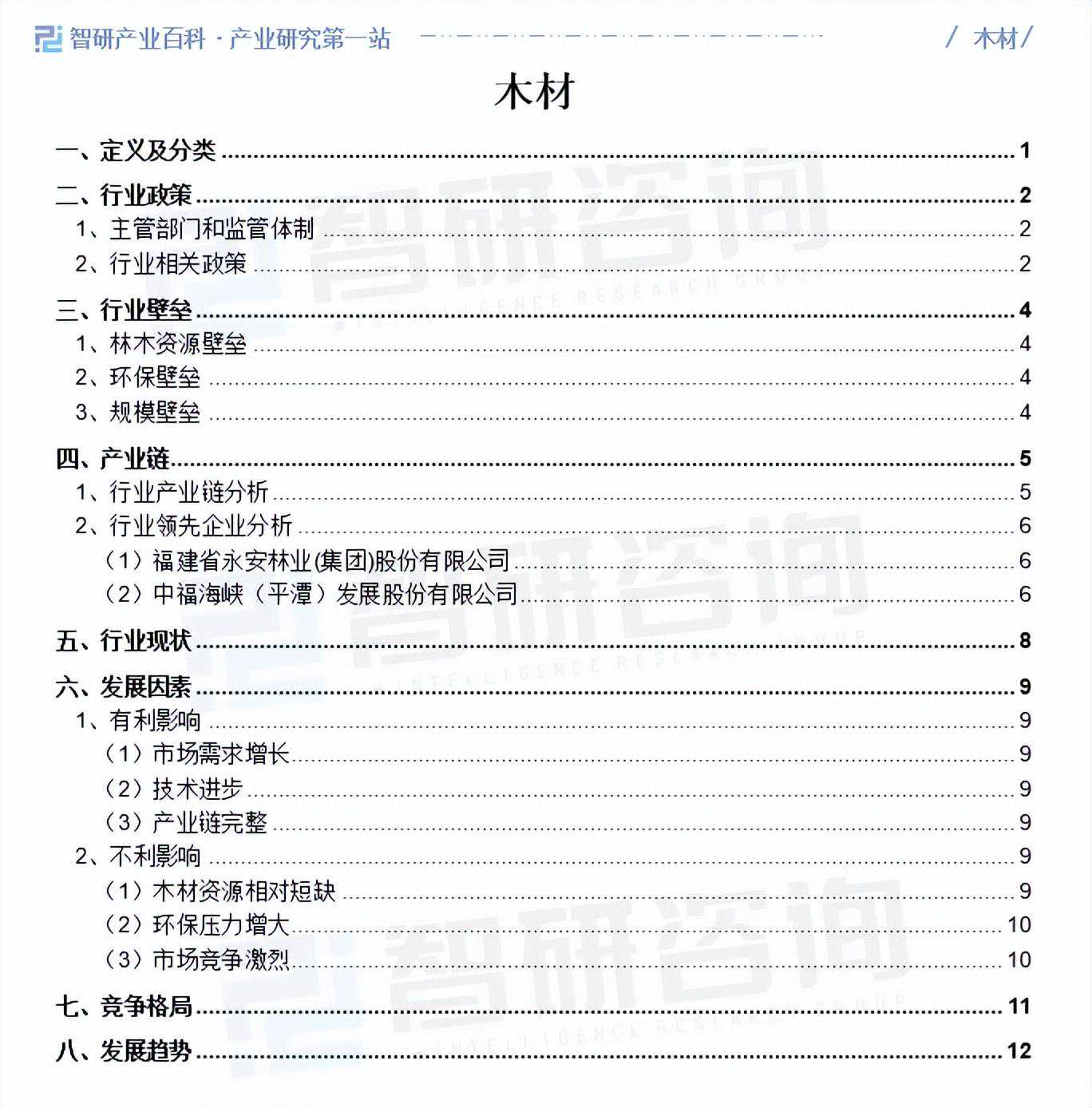 智研产业百科是智研咨询推出的产研工具平台,致力于为您提供全方位的百科式产业信息查询服务。智研咨询践行用信息驱动产业发展的企业使命,完善和丰富企业方法论,依托产业百科平台提升信息价值,持续为行业发展及企业投资决策赋能。木材产业百科作为木材产业一站式系统化研究工具,全面归纳了木材产业知识信息,内容涵盖木材产业的定义、分类、政策、产业链、竞争格局、发展趋势等,并依靠信息技术建立智能互链的行业知识图谱,为行研从业者及相关投资者提供深入的洞察力和全面的信息。