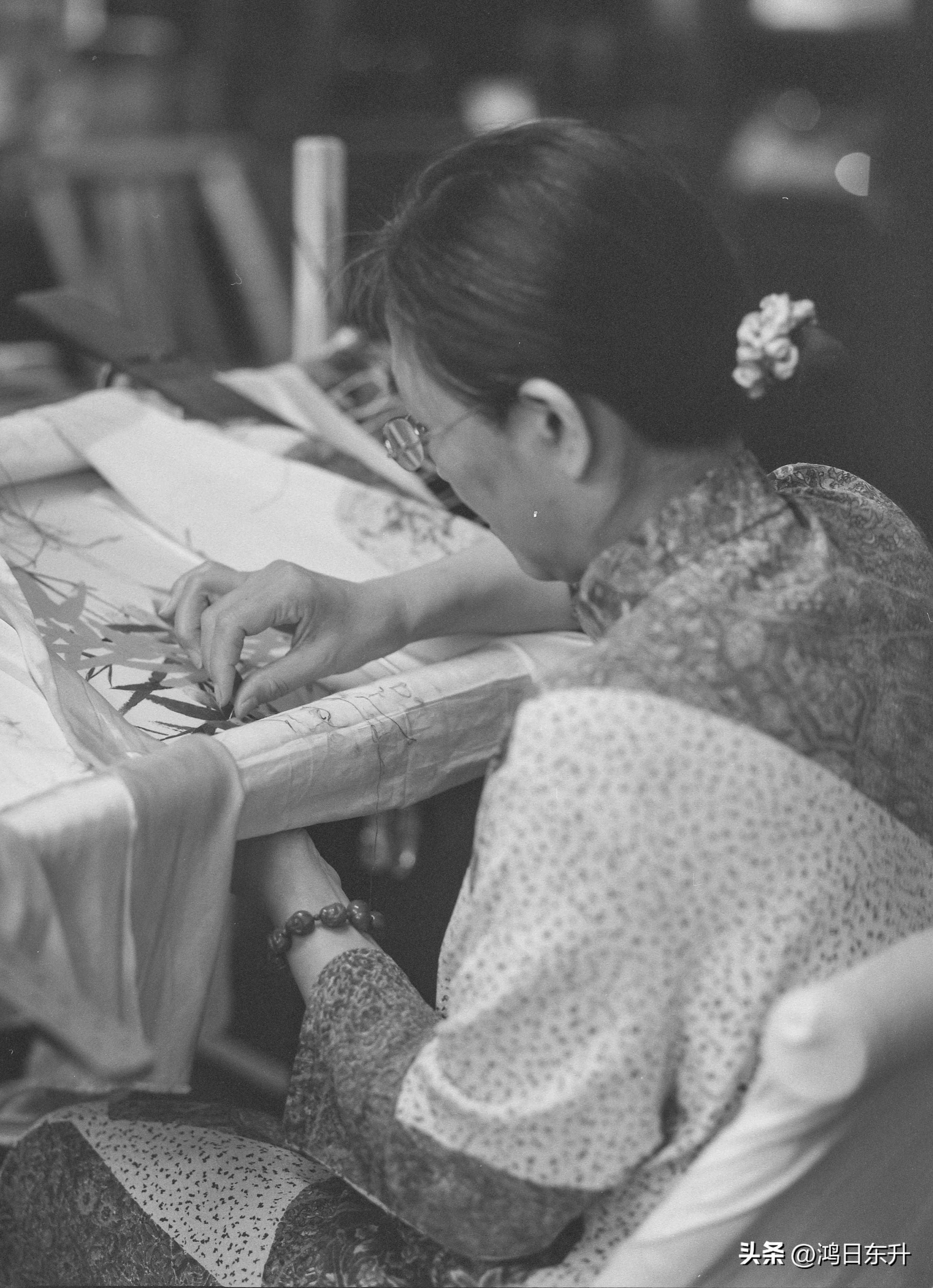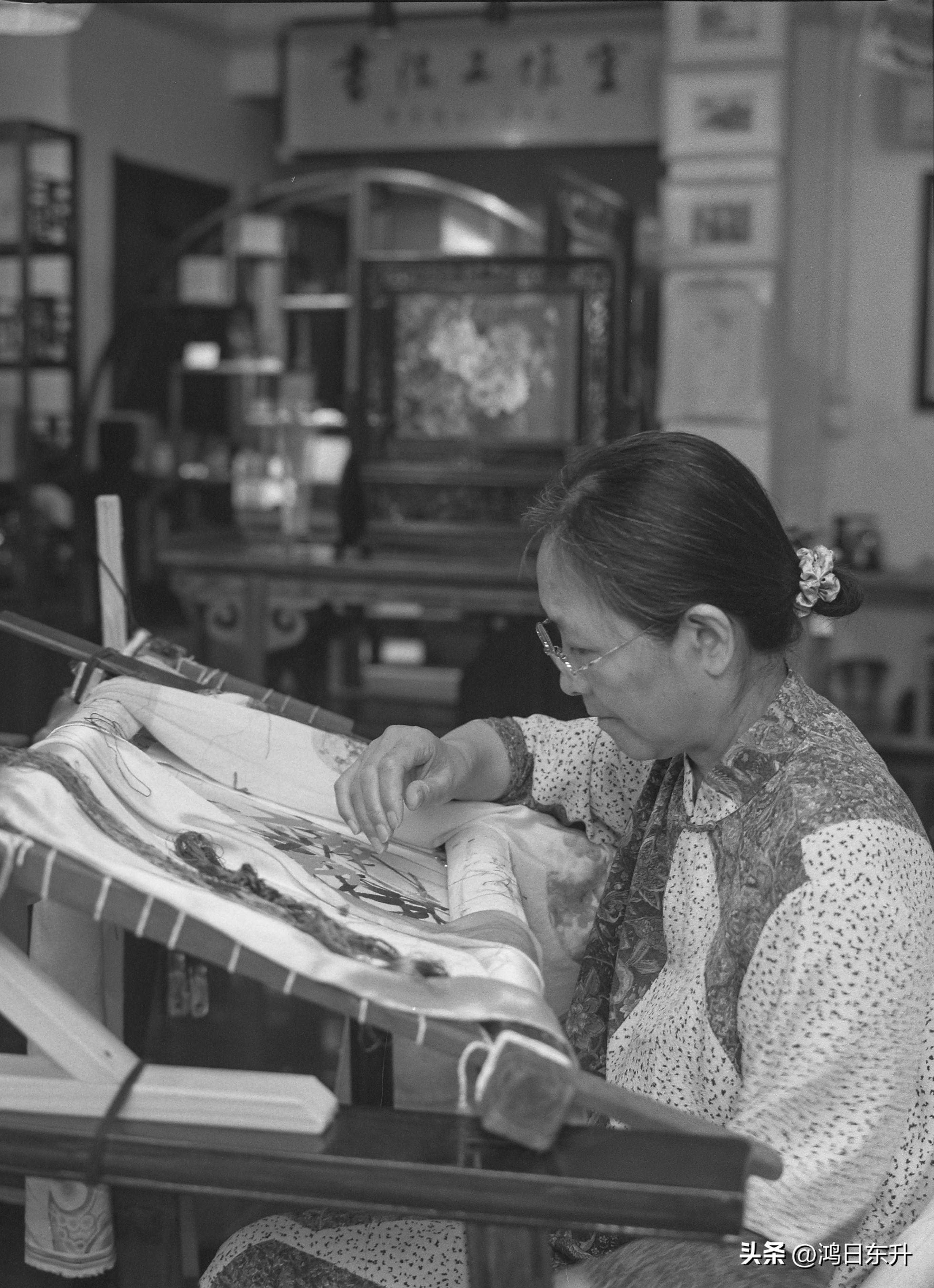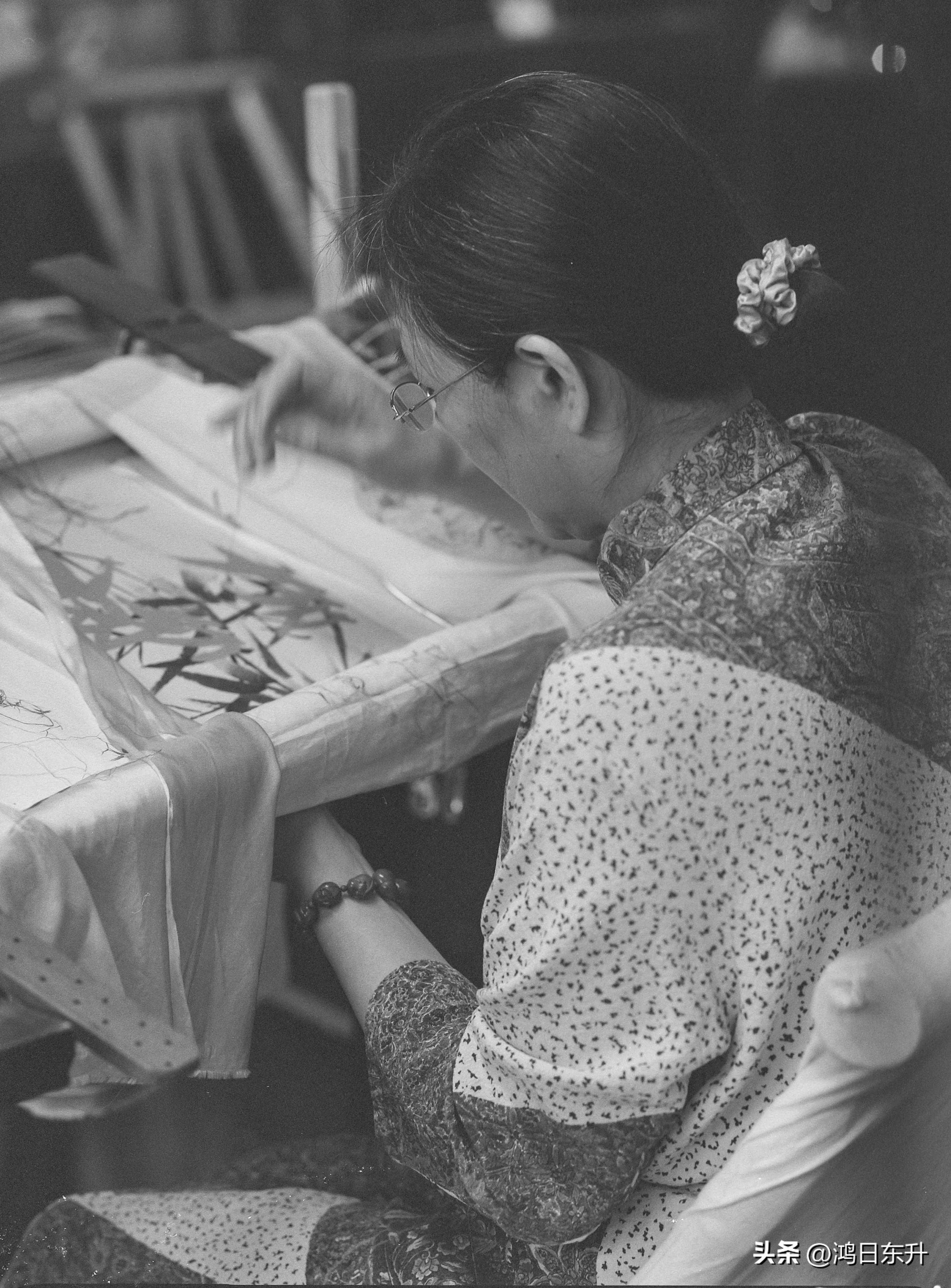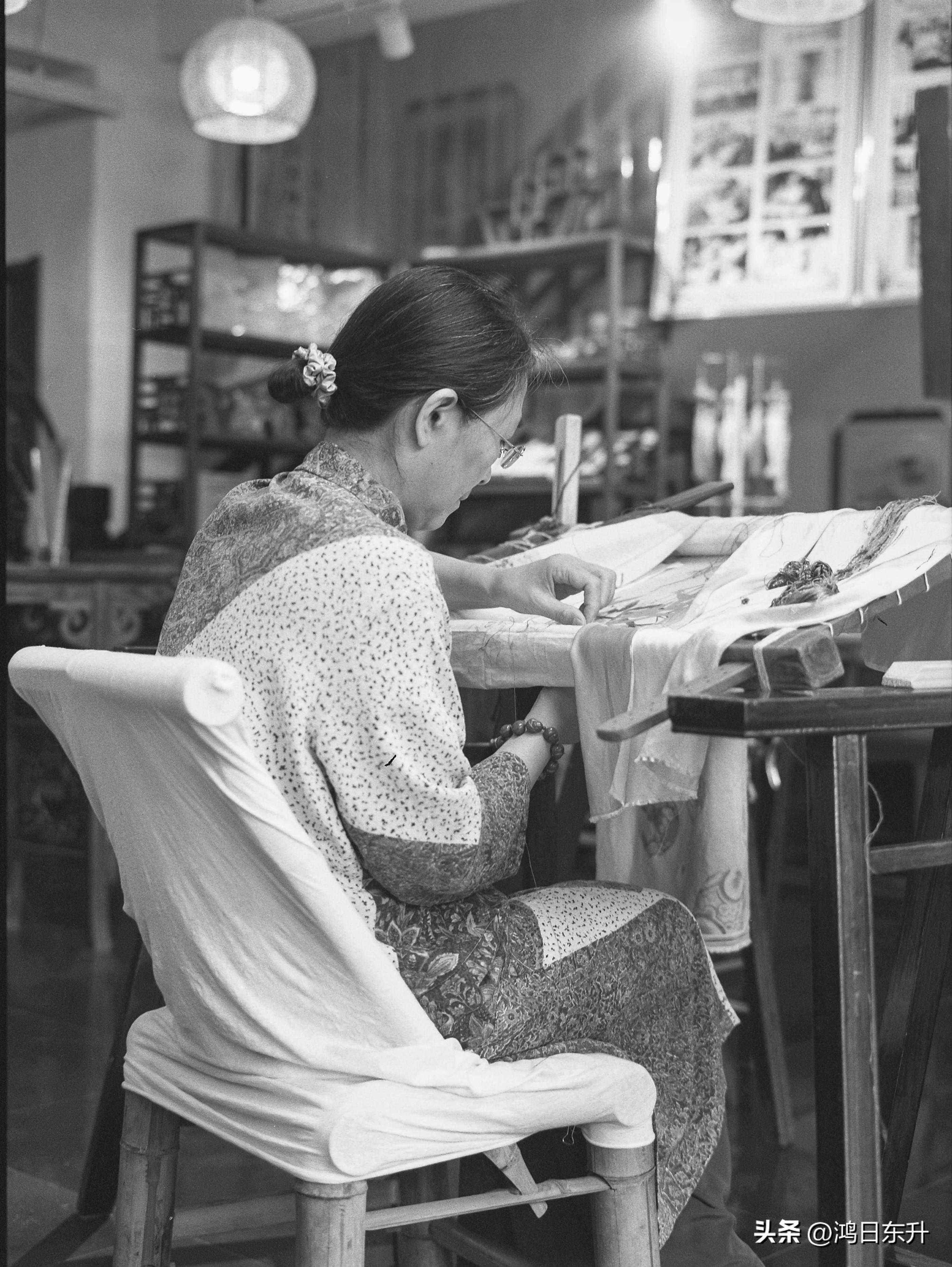 有家刺绣店里面的商品很有特色,老板在店门口一边刺绣一边看店,店里的刺绣作品很精美,老板说都是她亲手绣的。她用的绣床是她妈妈留下来的,她来古镇二十多年非常喜欢这座古镇。