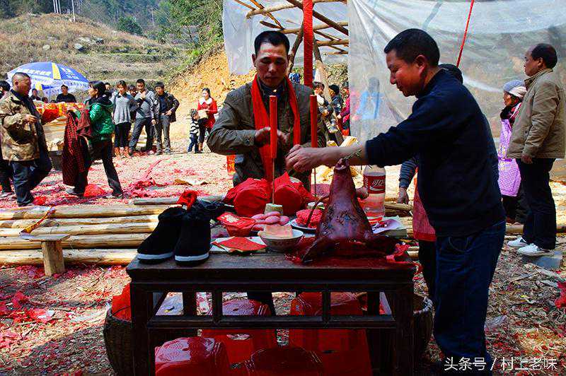 梁木做好后杀鸡祭梁,主修师傅把鸡血淋到梁木上边唱祭梁歌:“王母赐我一只鸡,生得头高尾又低;头戴凤冠配彩云,身穿锦缎五色衣。此鸡不是平常鸡,鲁班先师祭梁鸡;千年基呀万年基,红血宴梁大吉利”。