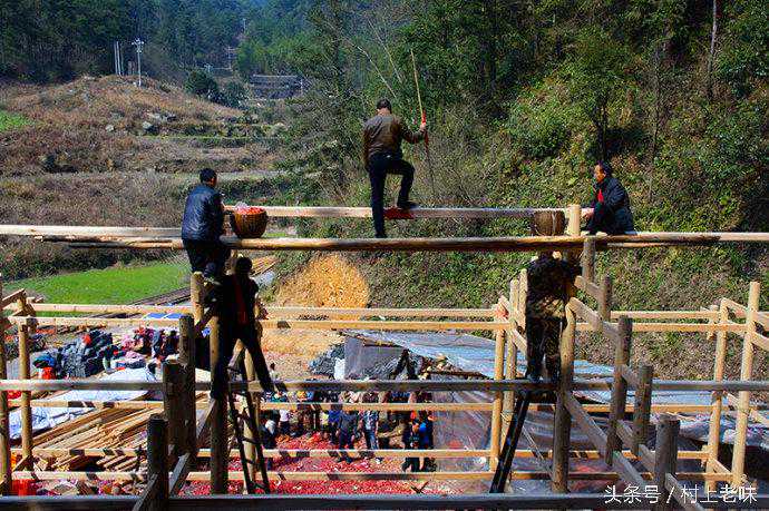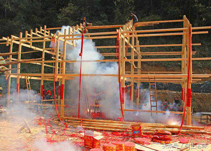 在隆隆鞭炮声中,屋梁冉冉升起。