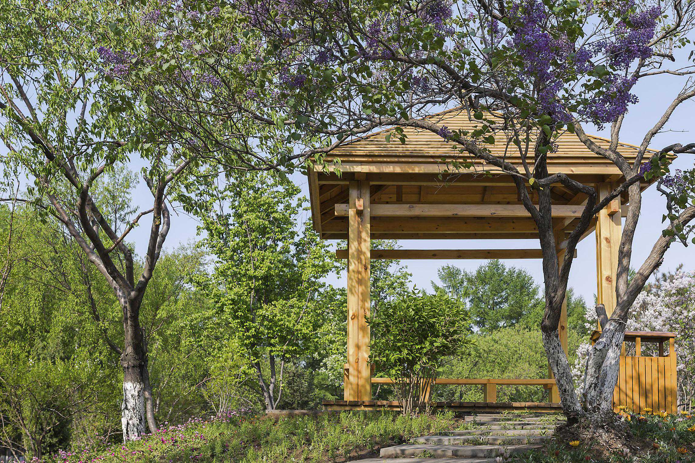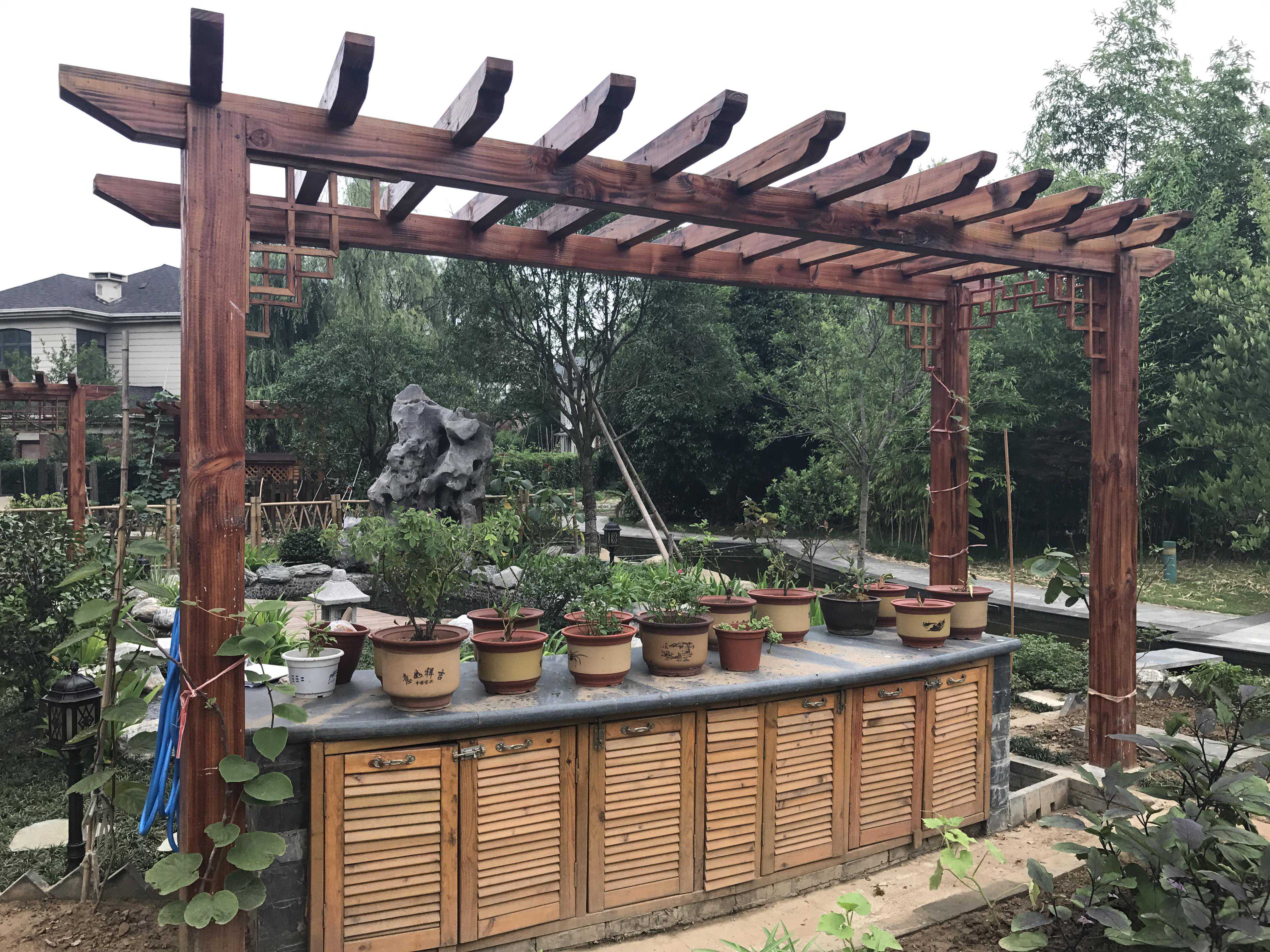 如果说庭院中不可舍弃的景观元素是植被,那么木材也是不可忽视的一大要素。纵观古今、国内外的庭院,似乎都能看到木材在庭院设计中的应用。木材以不同的形式、外观、作用于整体的庭院。而其之所以被广泛运用与庭院之中,不仅仅是因为改造之后的用途,也在于木材本身的魅力。而防腐木一直以来都是户外地板、园林景观及设施的理想材料,深受花园景观设计师们的青睐。