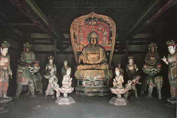 大平梁上墨书题记记载重建纪年,历代补修,1974年屋顶进行复原性维修,是唯一一座保存下来的,第四次法难之前建造的佛寺。此内景图为老照片,目前佛前两个胁侍菩萨已经被盗下落不明。