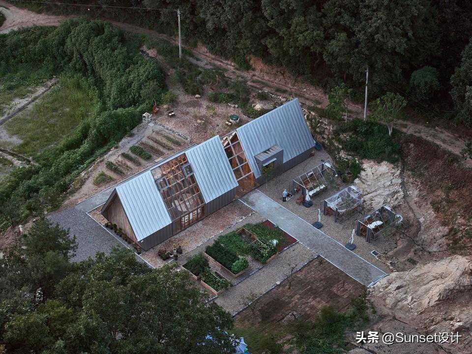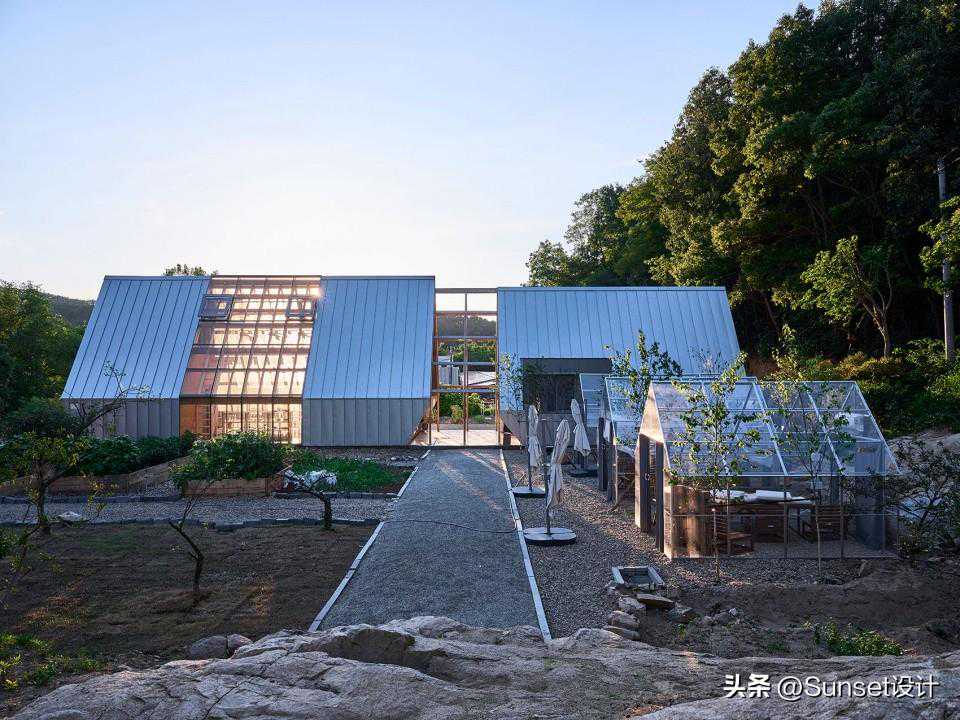 本项目位于韩国杨平郡的Mangmi镇,三座山脉交接处的山谷中。这里坐落于深山之中,氛围寂静平和。业主夫妇在退休之后选择在此地居住并种植果树。他们的需求是要配置服务设施、温室和露营营地。这片区域最重要的特征是森林,多年在这里生长的树木比任何事物都能够承担这个地方的回忆。