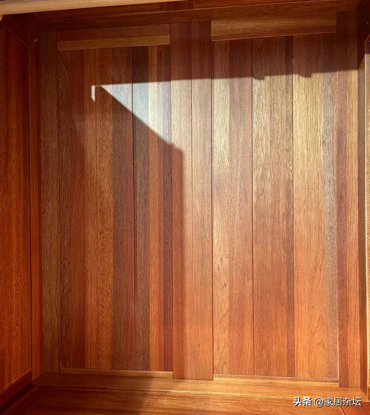 ②、原木板材之间是有拼接的,但是上下是没有分层的。所以,我们看到的原木板材纹理几乎没有断纹,非常完整。