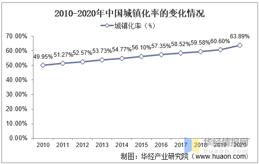 木地板主要用于城镇房产的装修,城镇化率持续提升将带来木地板行业的需求增长。2018年至2020年,我国的城镇化率分别为59.58%、60.60%和63.89%,呈现稳步上升趋势,但距离发达国家80%以上的平均水平仍有较大的增长空间。预计未来农村人口将向城市进一步转移,带动木地板市场大量的新增需求。