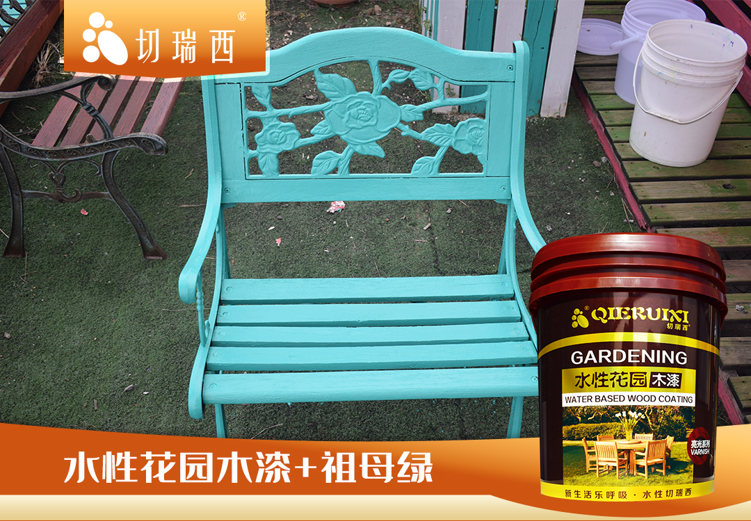 公园长椅底座为实木条,扶手与靠背处由金属制成,置于户外日晒雨淋出现的漆膜起皮、霉变发黑。水性漆搭配覆盖色所调配出来的水性色漆,刷涂在基材表面上,覆盖漆膜遮瑕效果好,整体漆膜平整光滑,耐磨耐擦洗。