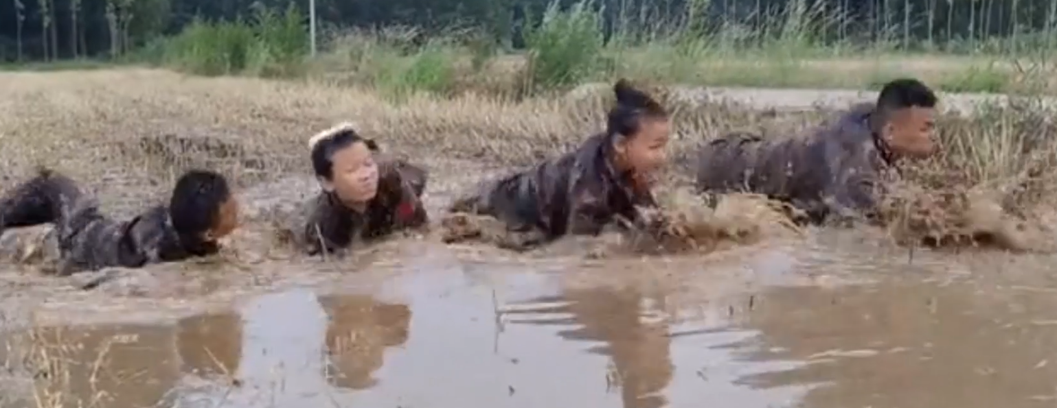 孩子们在泥坑里练倒功