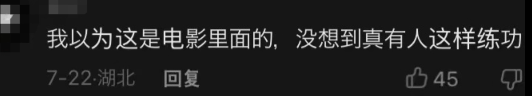 就这么一套动作,彻底刷新了网友对“练功”二字的新认知,以前大家只在电影里看到过这个场景,没想到现实生活中还真有人是这样练功的。