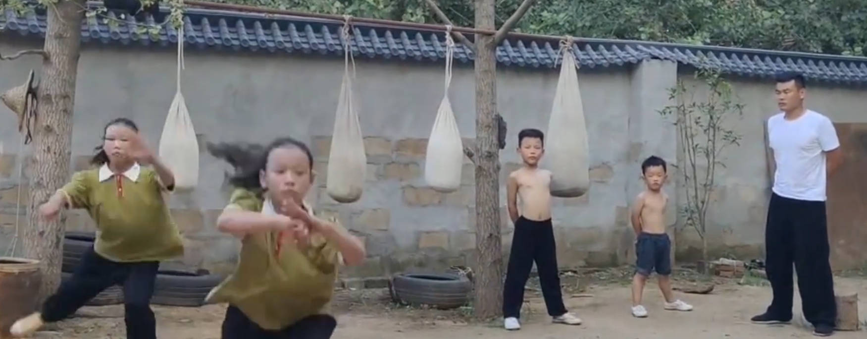 为了让刘龙的功夫和苦心得以延续,在网友的建议下,他专门开设了一个武术班,不仅带着他的三个孩子充当门面,还带着全村热爱武术的孩子们一起练武实现梦想。