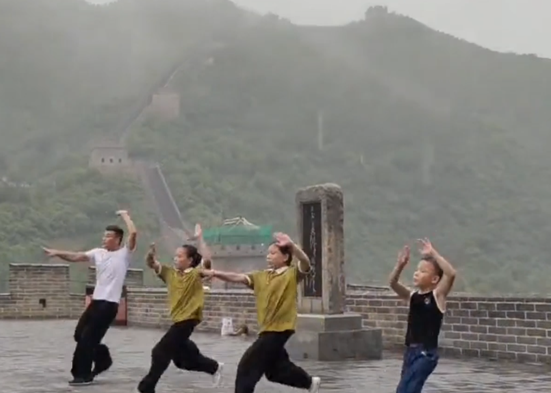 刘龙带孩子们在万里长城上炫技
