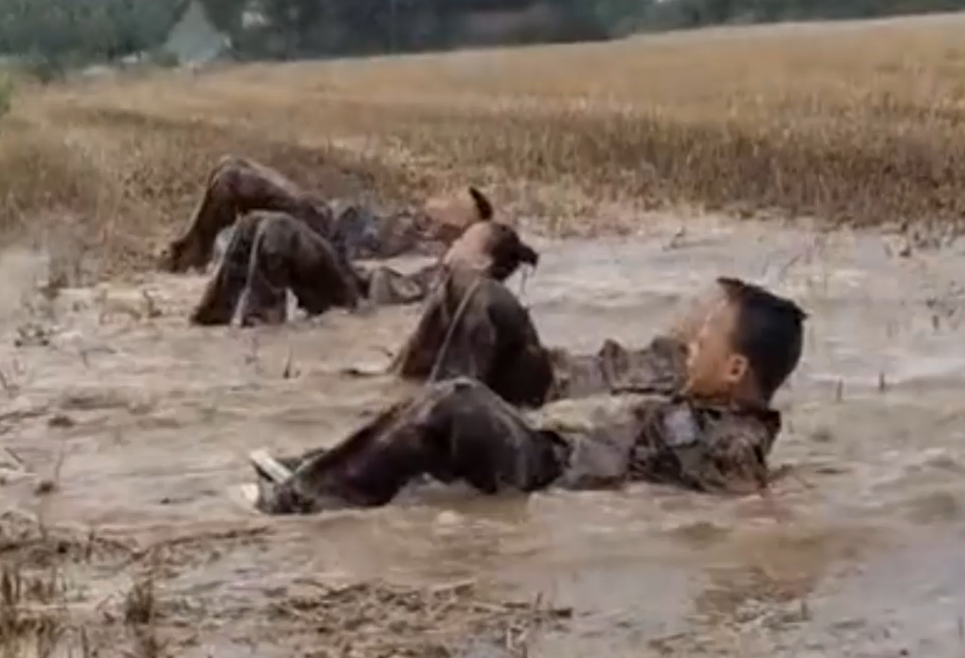 刘龙带孩子们在泥坑里训练