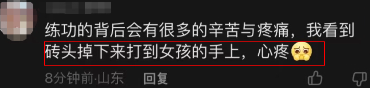 有人心疼刘龙大女儿被砖头砸到手,这可以理解,但真要说起来,不管是男孩还是女孩,只要跟练武沾上边,必定是要吃这份苦承受这份痛的,刘龙作为父亲,对孩子的爱肯定不比网友少半分。