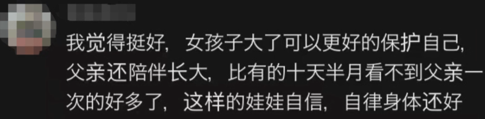 网友认为,“练武”二字就代表着“吃得苦中苦,方为人上人”,是磨炼孩子意志和耐力、强身健体的好方式。