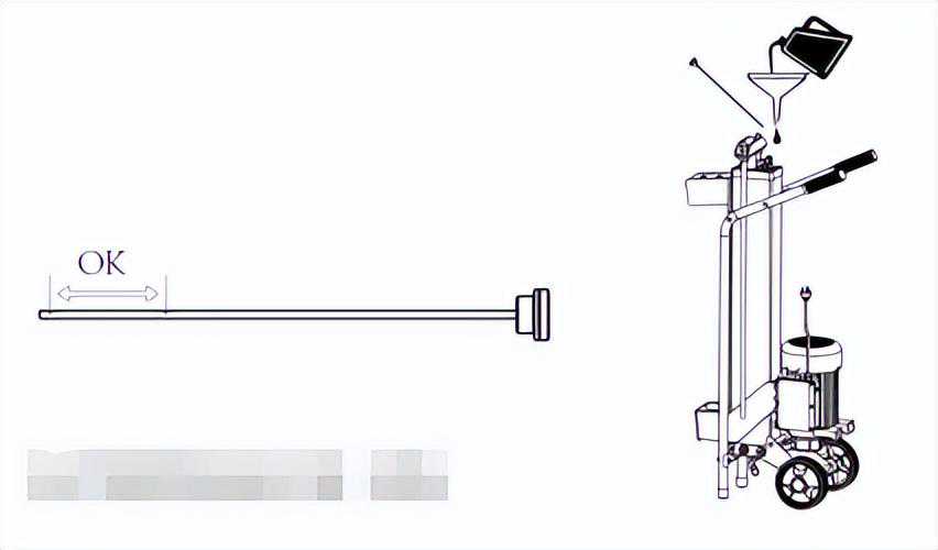 4.劈柴机在使用150小时后需要更换液压油,请卸掉放油螺栓然后放油(图1),使用46号液压油加注,在清洁完油位尺(放油螺栓)后如图2将油位尺插入检查确保油量在油位尺两条黑线槽之间,加油完成后在水平放置劈柴机前确保螺栓拧紧以免漏油。