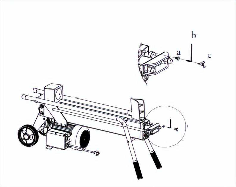 2.劈柴机使用前应松开放气螺钉,旋转58圈直至露出斜坡,在劈柴机久置不用或需要运输时请拧紧放气螺钉,运输前使用泡沫固定好电机并尽量避免颠簸。