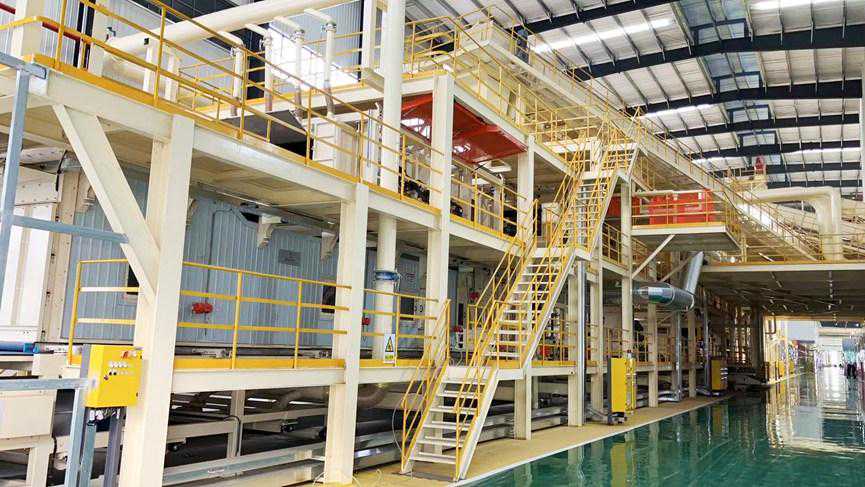 湖北东霖新材料项目由安徽六安东盾木业有限公司投资,2022年11月动工建设,占地面积468.6亩。引进亚联的49米长8.5英尺宽连续压机,意大利格鲁巴斯、意玛帕尔等国内外先进生产设备,建成年产60万m³高强刨花板和年产10万m³贴面板生产线。产品涵盖E0级板材、防潮板材、轻质高强刨花板和特殊规格定制板材等多种品类,具有密度低、强度大、绿色环保等特点。广泛应用于全屋定制家具、建筑、包装等领域。