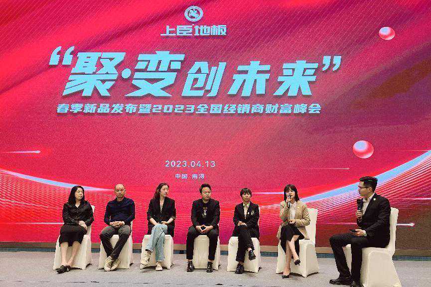 而峰会备受瞩目的新品发布环节,由上臣地板董事长顾国华亲自登台演绎,揭开2023新品的神秘面纱。顾董表示,上臣地板紧跟当下生活美学趋势,从产品研发到家居场景的应用,多维度分享新产品的核心优势。