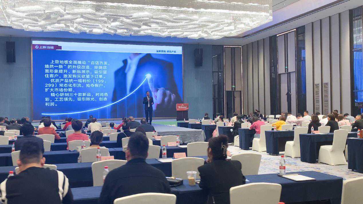 会议率先从营销推广开始,上臣地板总经理顾正豪以抖音落地推广与营销结合展开深度分享与探讨,赋能终端门店快速响应新媒体运营。